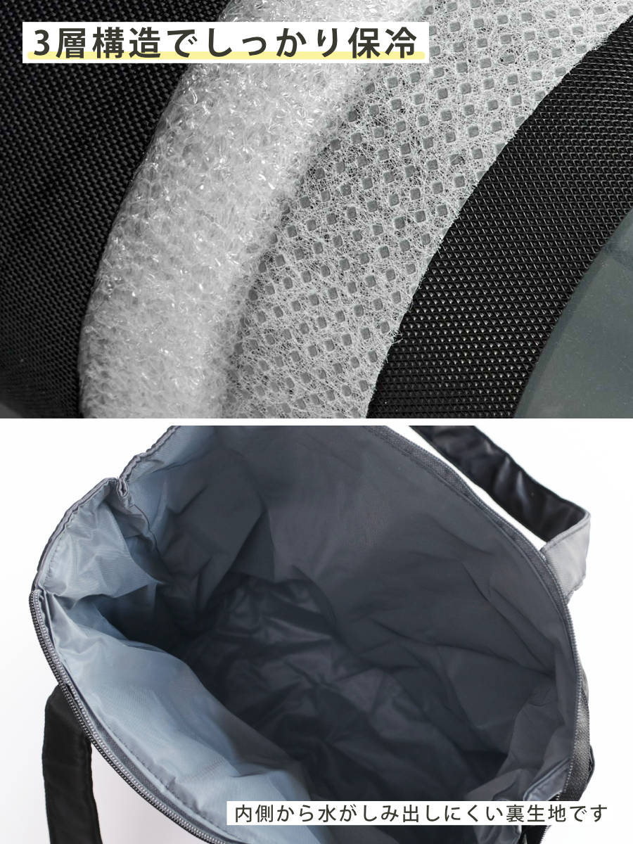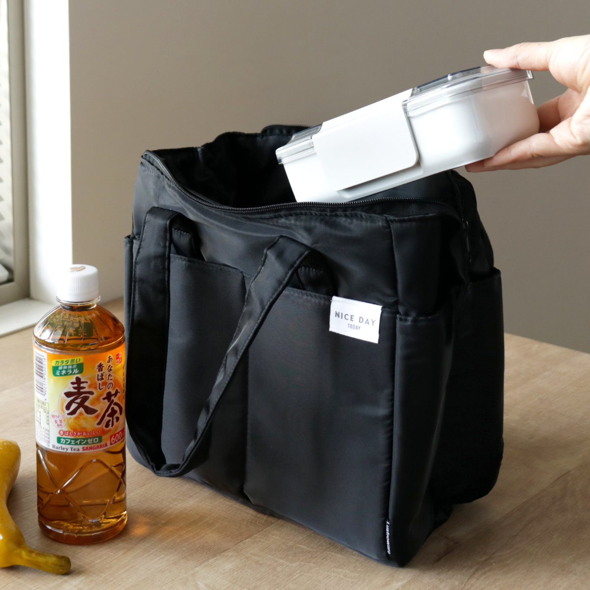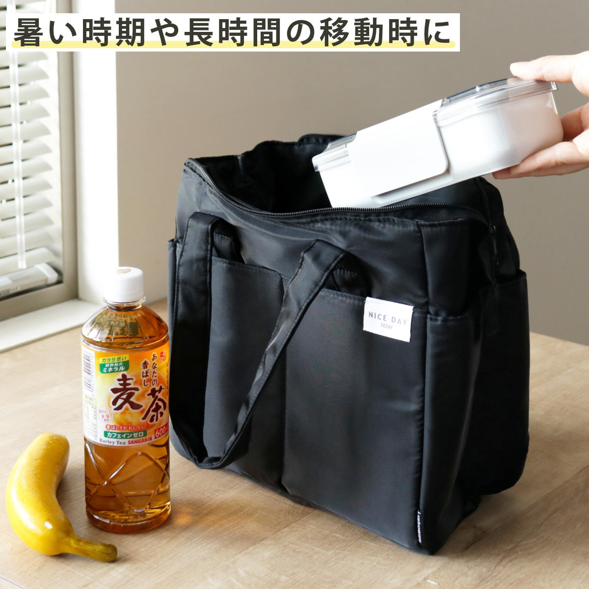 お弁当の持ち運びに安心な保冷効果のあるバッグです。ペットボトルやクールリングなども冷たいまま持ち運べます。