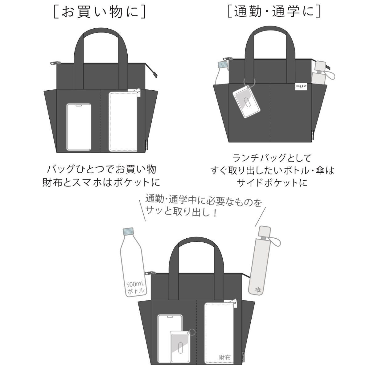 ランチバッグ 4ポケット保冷バッグ ( 弁当袋 お弁当袋 保冷ランチバッグ ランチトートバッグ ランチトート 大容量 お弁当箱 弁当 袋 ランチ マチ付き お弁当入れ 手提げかばん ポケット ファスナー サブバッグ )