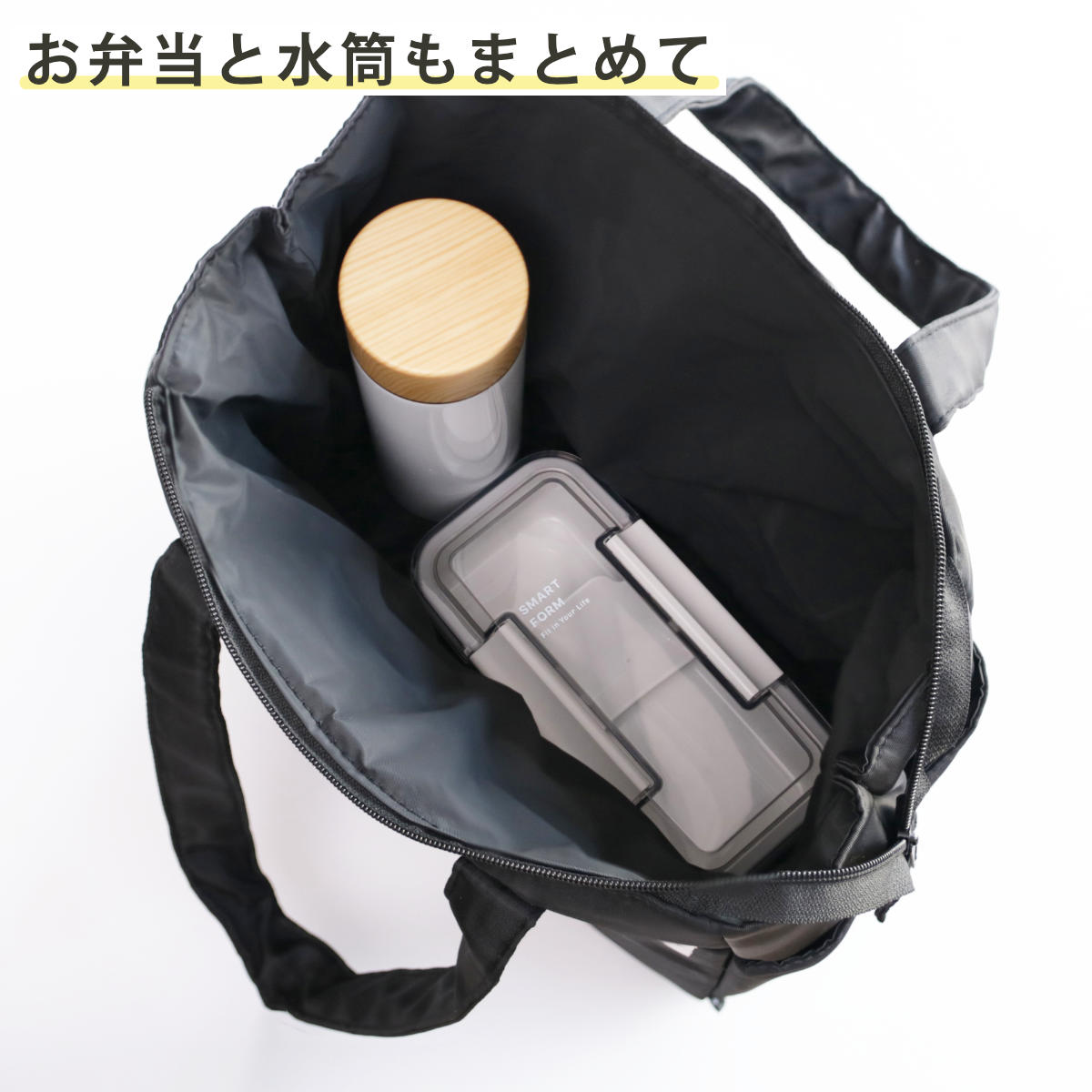 お弁当箱だけでなく他の荷物も一緒に持ち運べるので手荷物がスッキリコンパクトに収まります。