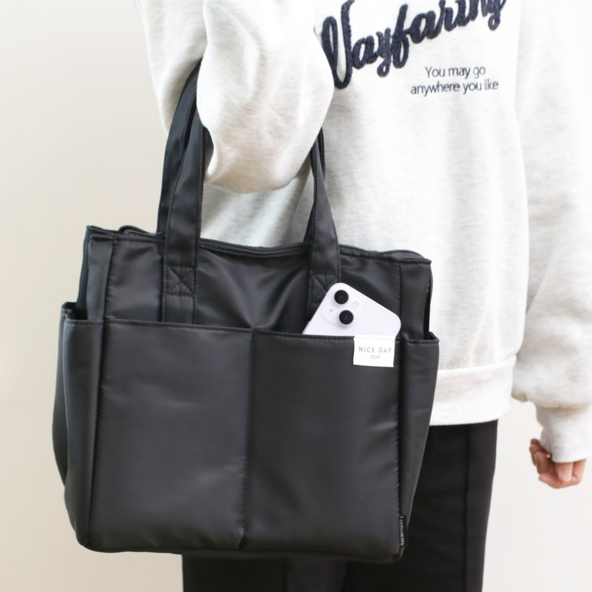 スマートフォンや日傘、水筒なども入る深めのポケットが4つ付いています。取り出しやすく、中身がゴチャつかずに整理できます。