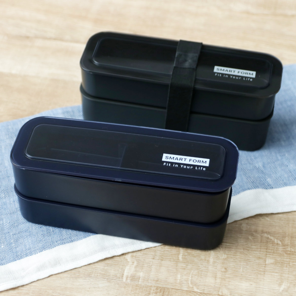 弁当箱 890ml イージーケアランチボックス3WAYスリム(バック付) ( お弁当箱 ランチボックス 食洗機対応 レンジ対応 パッキン一体型 大容量 ランチバッグ 食洗機OK レンジOK お弁当 弁当 スリム 二段 ランチベルト 付き 男子 ) 【ネイビー】