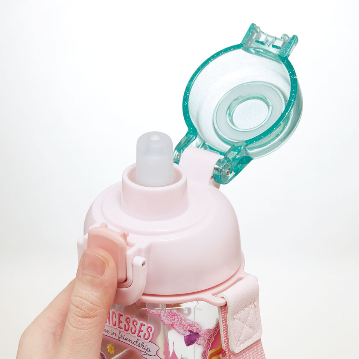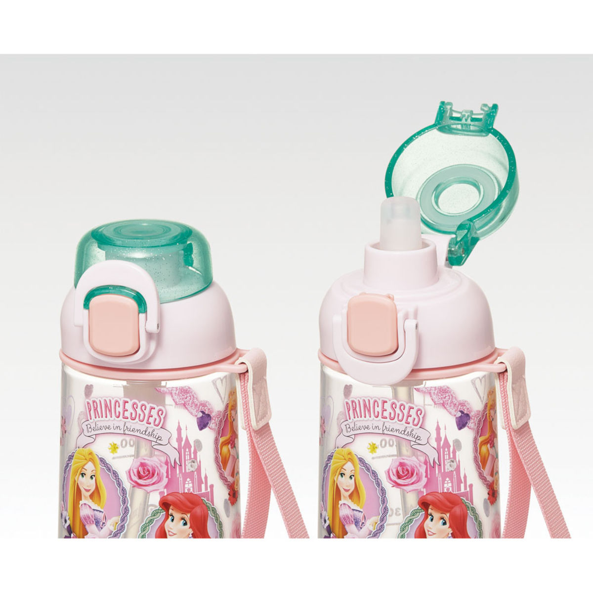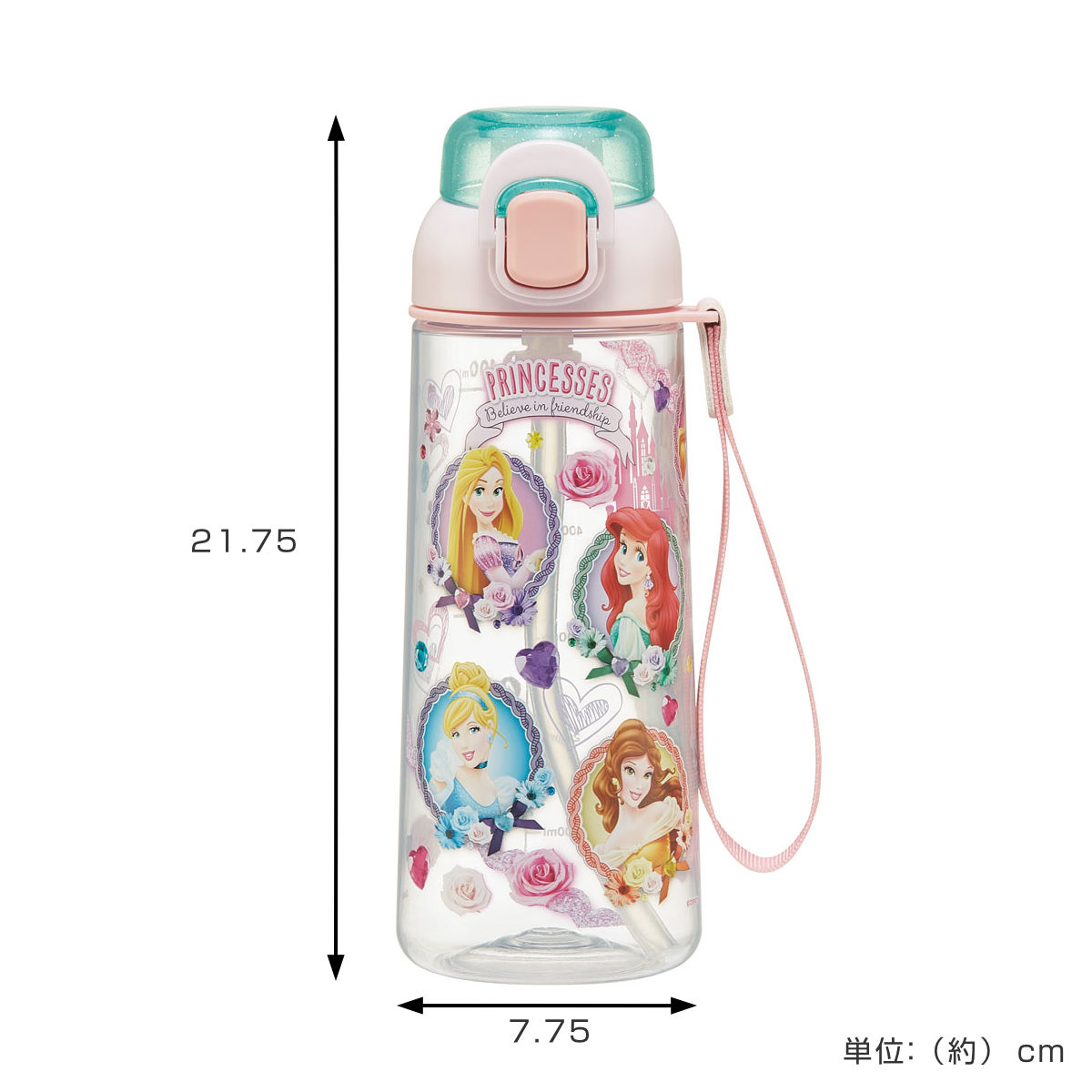 水筒 630ml ワンプッシュストローボトル プリンセス ( ディズニープリンセス 子供用 プラスチック ストローボトル クリア ワンタッチ 目盛り ストラップ付き 広口 軽量 ストロー ボトル ワンプッシュ )