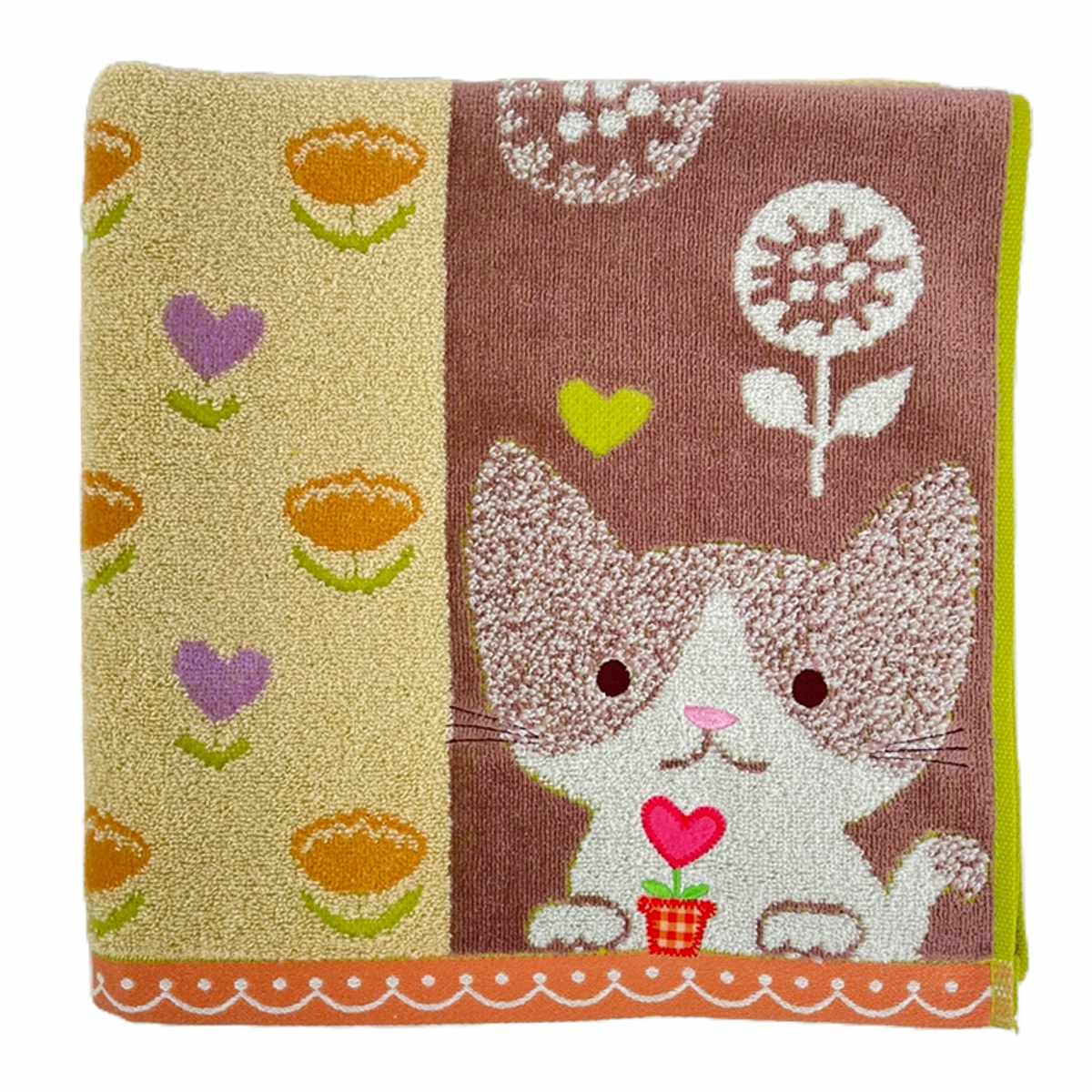 タオル フレル ホイップクリーム バスタオル 60×120cm ( 湯上りタオル たおる 綿100% 吸水 アニマル柄 ジャガード織 デイリータオル 体拭き ふんわり 60×120 カエル クマ ネコ ウサギ アルパカ イヌ ) 【ネコ】