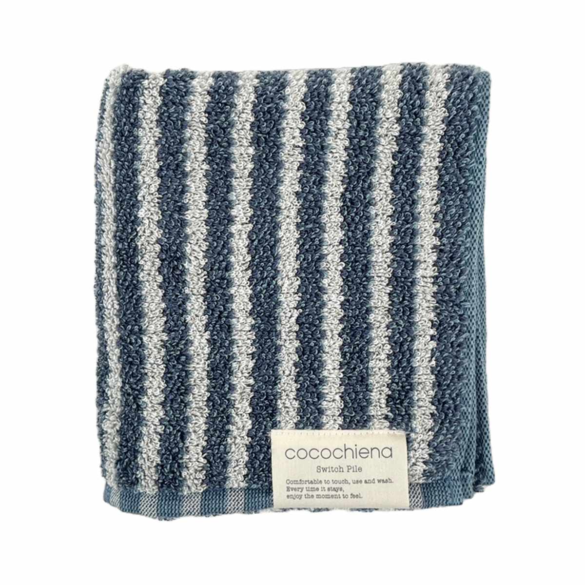 タオル ココチエナ ライン フェイスタオル 34×80cm ( 顔拭きタオル たおる 綿100% 吸水 抗菌 防臭 cocochiena デイリータオル 汗拭き ふんわり 34×80 ストライプ ブラウン ネイビー ) 【ネイビー】