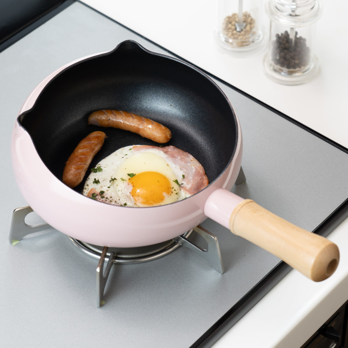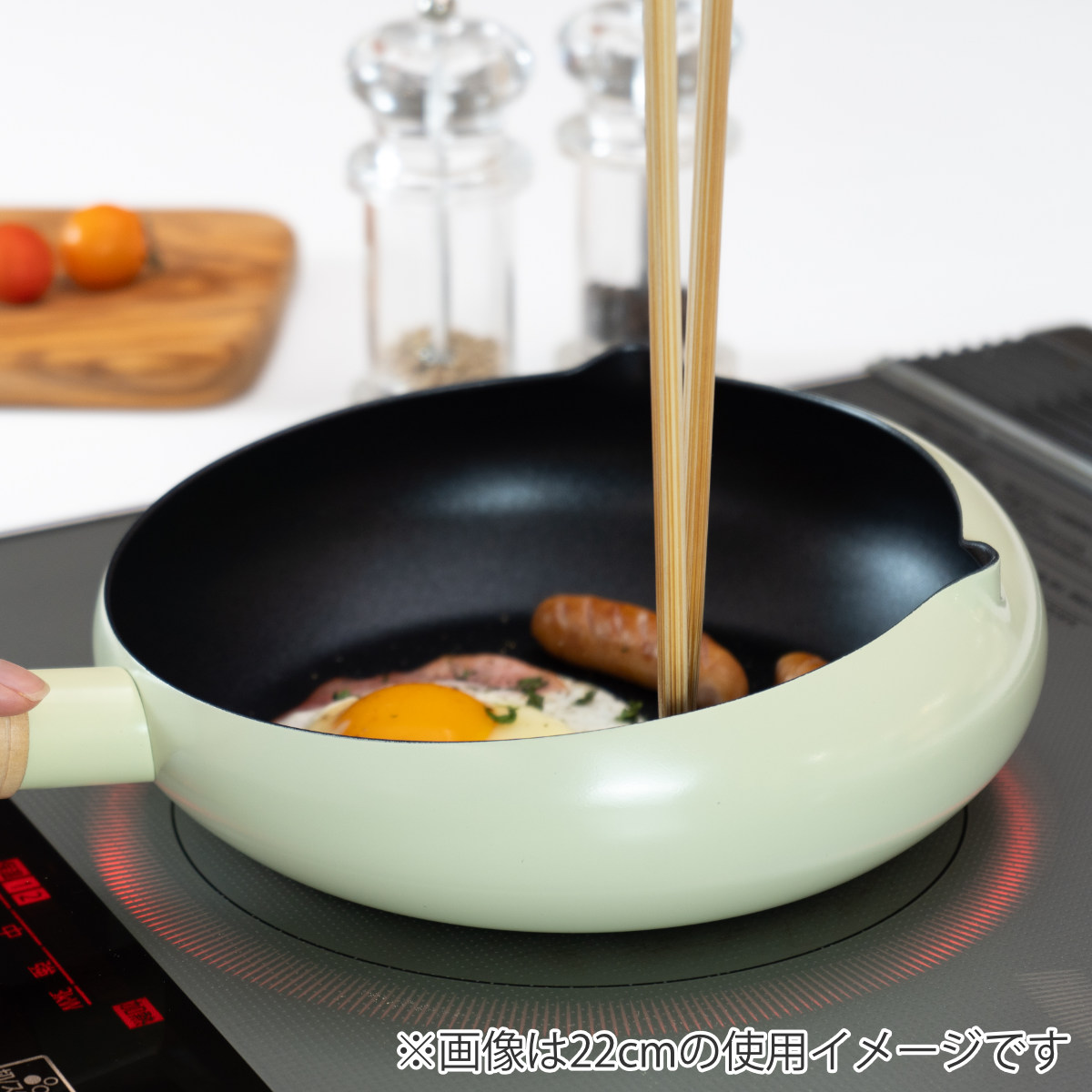 手前と奥で鍋高が異なるので、炒飯などの炒め物の時にあおりやすいです。深さもあるので、ワンパンパスタづくりなど、茹でものをするのにも便利です。