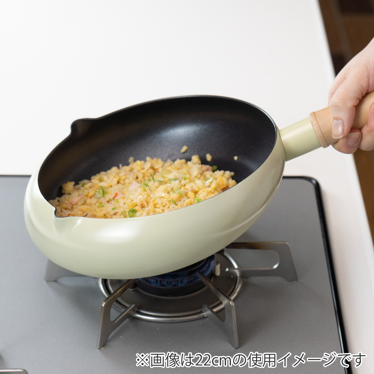 ●鍋高が手前と奥で異なるので、炒飯などをあおりやすいです。