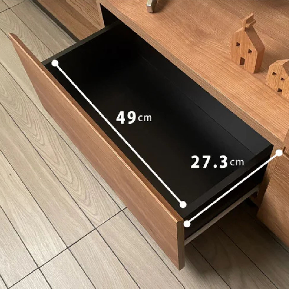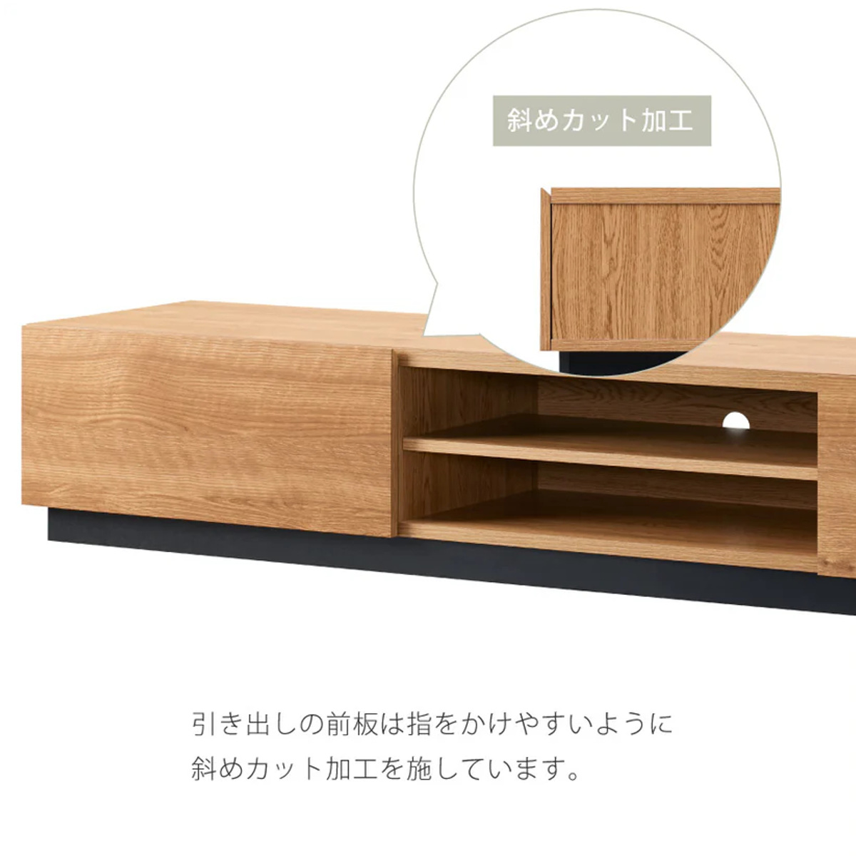 引出しの前板は指をかけやすい斜めの形状です。