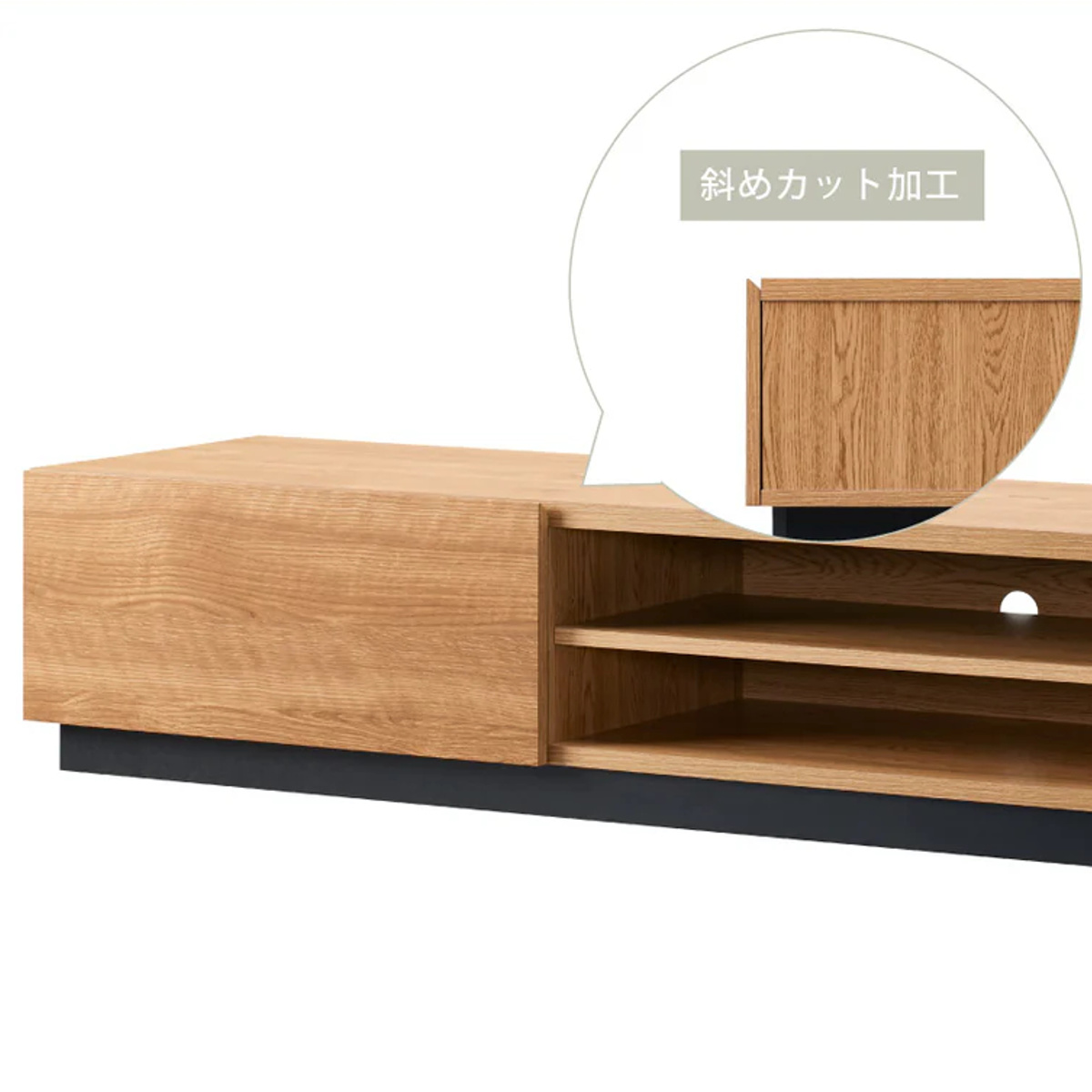 天板に配線用の切り欠きがあるため、テレビのコードを裏に通したまま壁面にピッタリ配置できます。