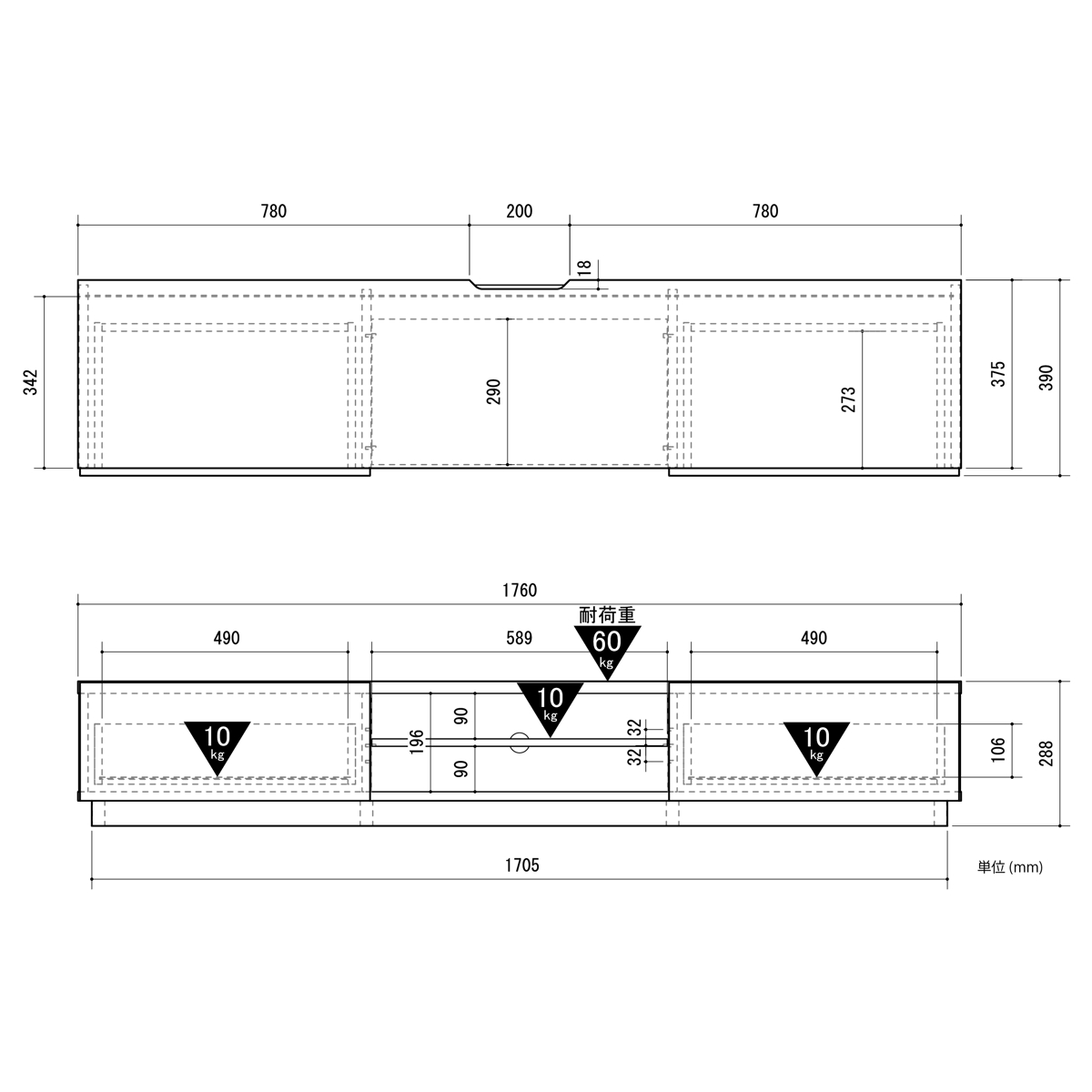 | 棚板1枚あたり耐荷重 | 10kg |