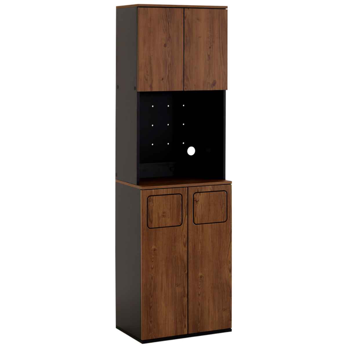ゴミ箱一体型食器棚 幅53.4cm ゴミ箱2つタイプ 45L対応 ヴィンテージ ( ごみ箱 食器棚 スペース 付き 収納付き おしゃれ 大容量 棚 家具 キッチン キッチンラック 収納 ダストボックス ラック 2口コンセント コード穴付き ) 【ウォールナット】