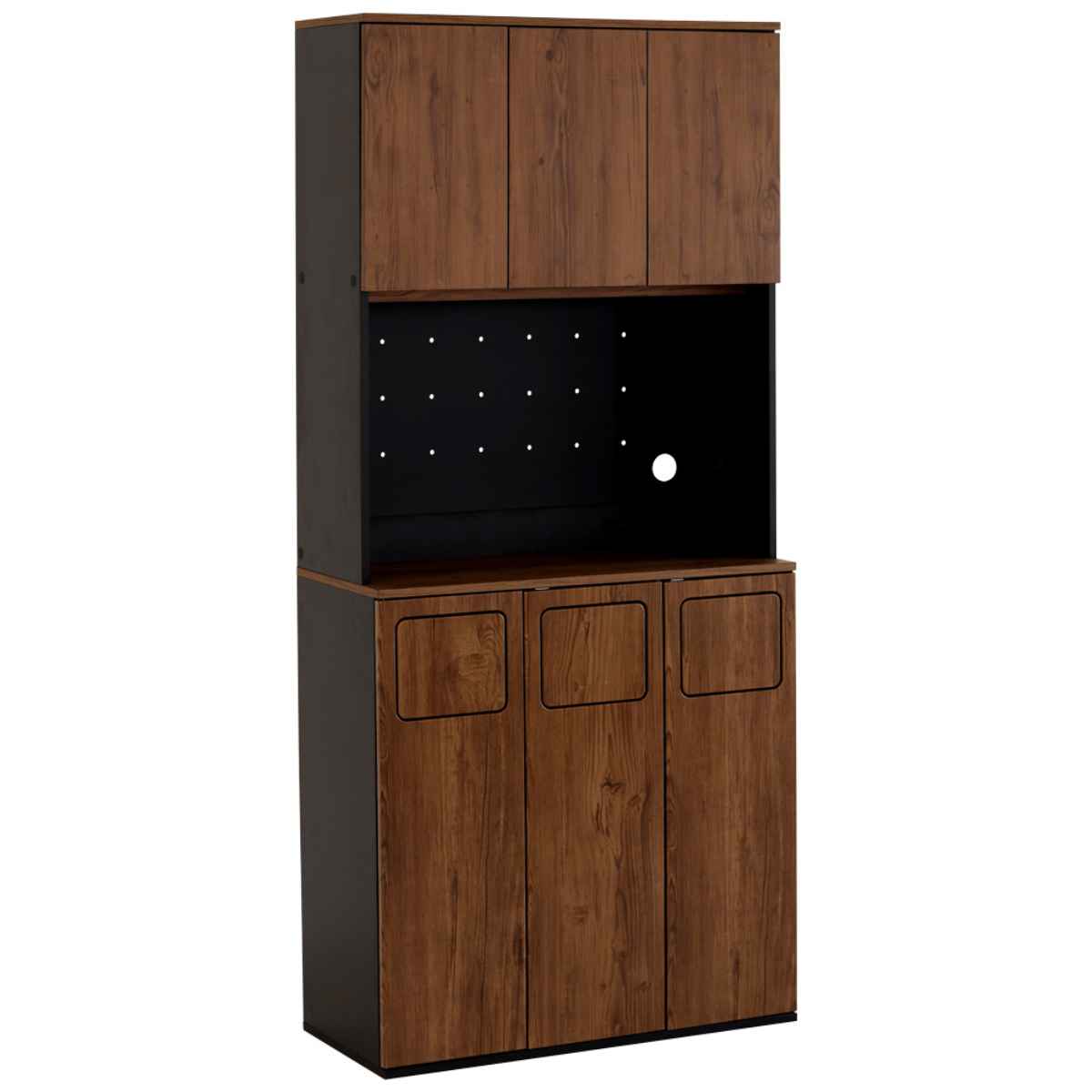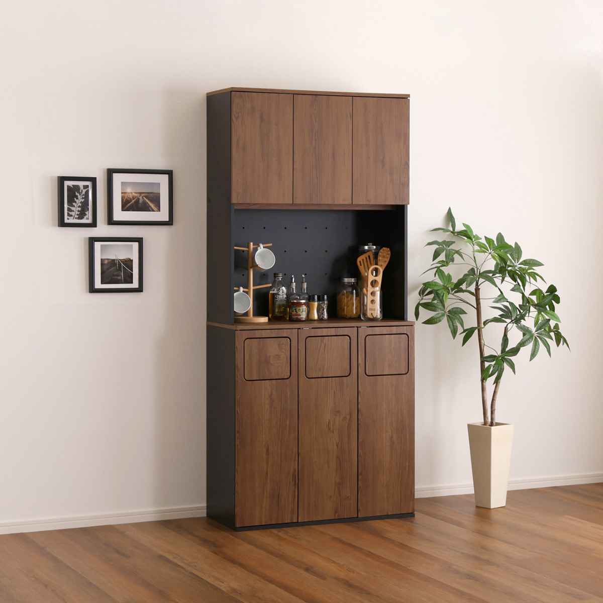 ゴミ箱一体型食器棚 幅80cm ゴミ箱3つタイプ45L対応 ヴィンテージ ( ごみ箱 食器棚 スペース 付き 収納付き おしゃれ 大容量 棚 家具 キッチン キッチンラック 収納 ダストボックス ラック 2口コンセント コード穴付き ) 【ウォールナット】