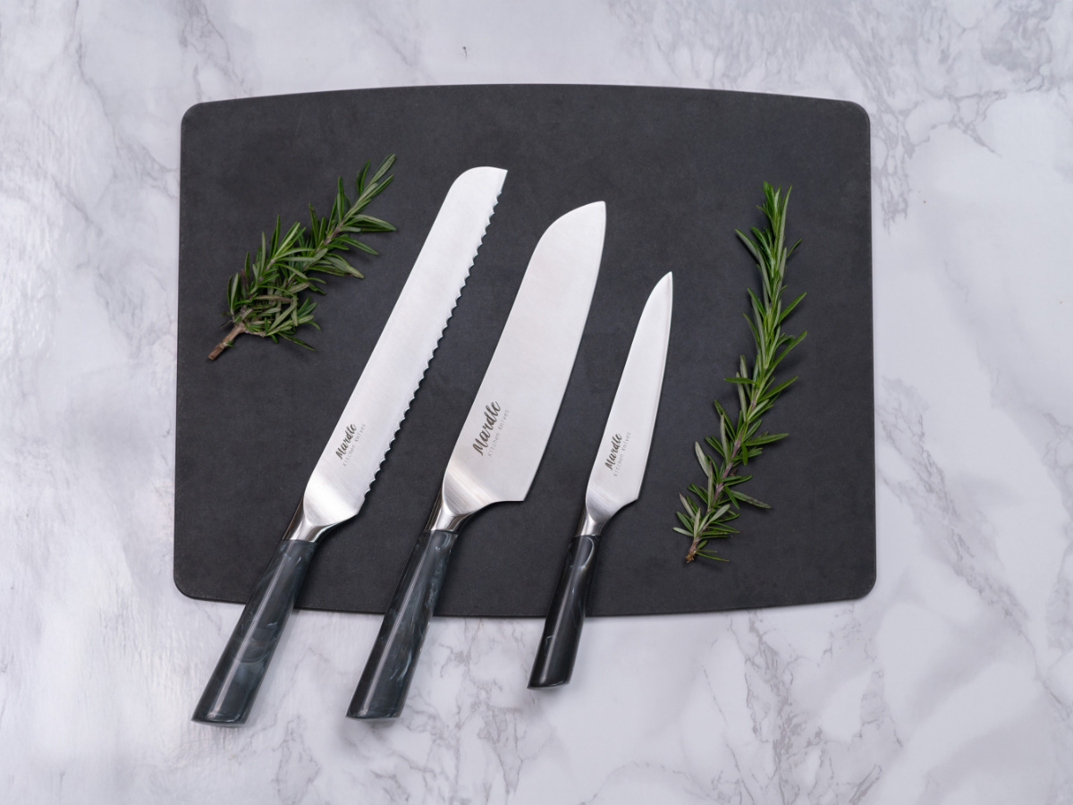 ![]() ペティナイフ | ![]() 三徳包丁 | ![]() パン切り包丁 |
