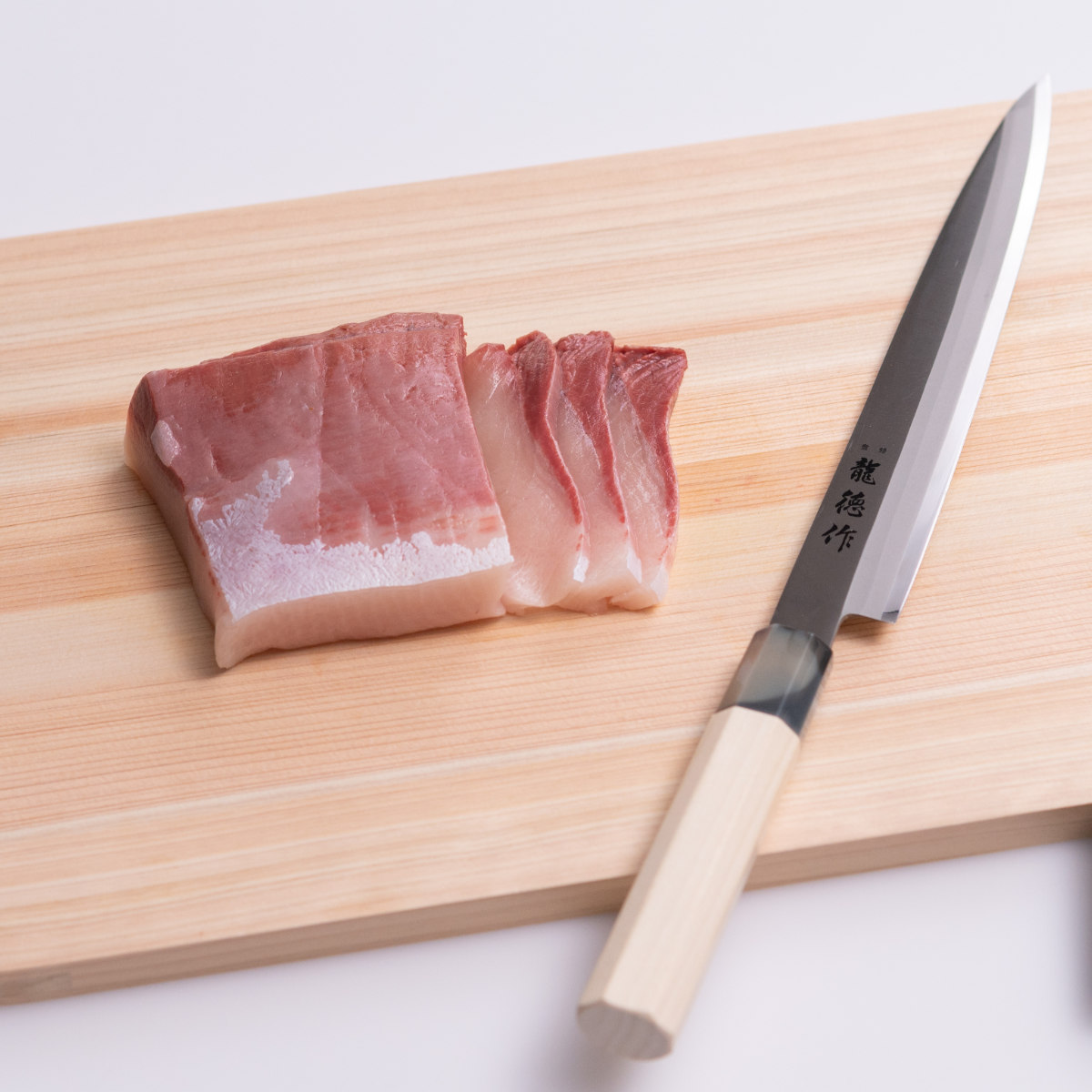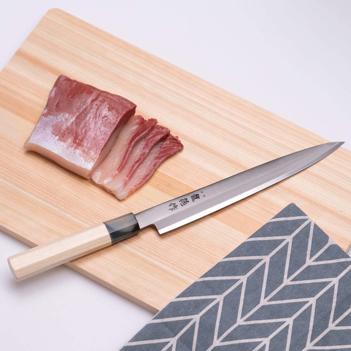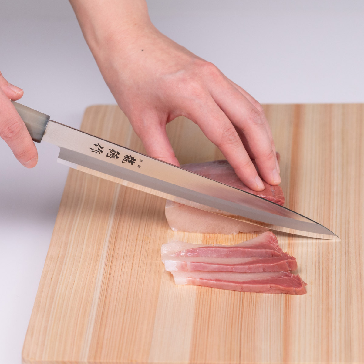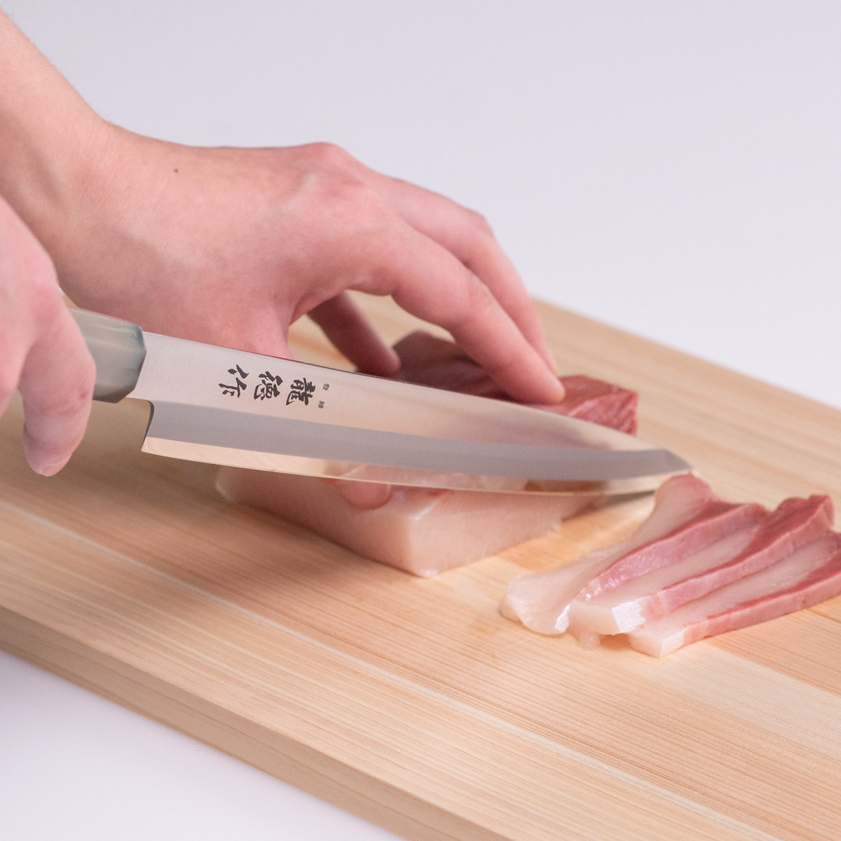 魚や肉の切り身からお刺身を作るのに最適な包丁です。スッと一回で切れるように刃渡りが長く作られています。
