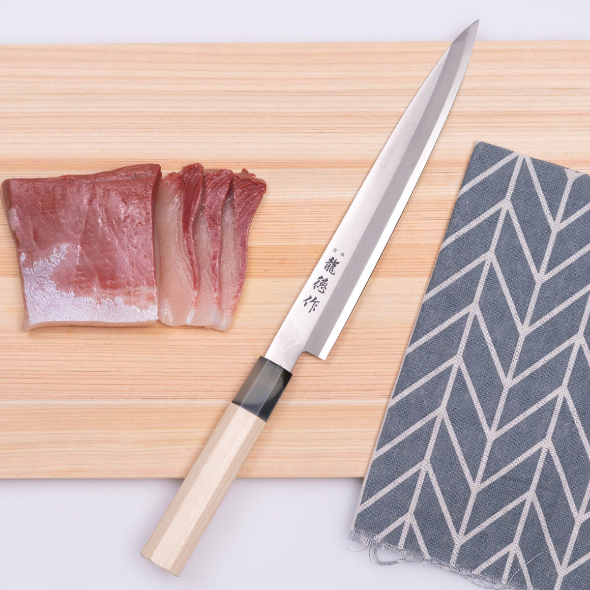 柳刃包丁 21cm 龍徳作 八角柄 和包丁 日本製 ( 刺身包丁 さしみ包丁 210mm 210ミリ ステンレス 片刃 職人 燕三条 木柄 錆びにくい 切れ味抜群 調理小物 調理道具 キッチングッズ キッチンツール )