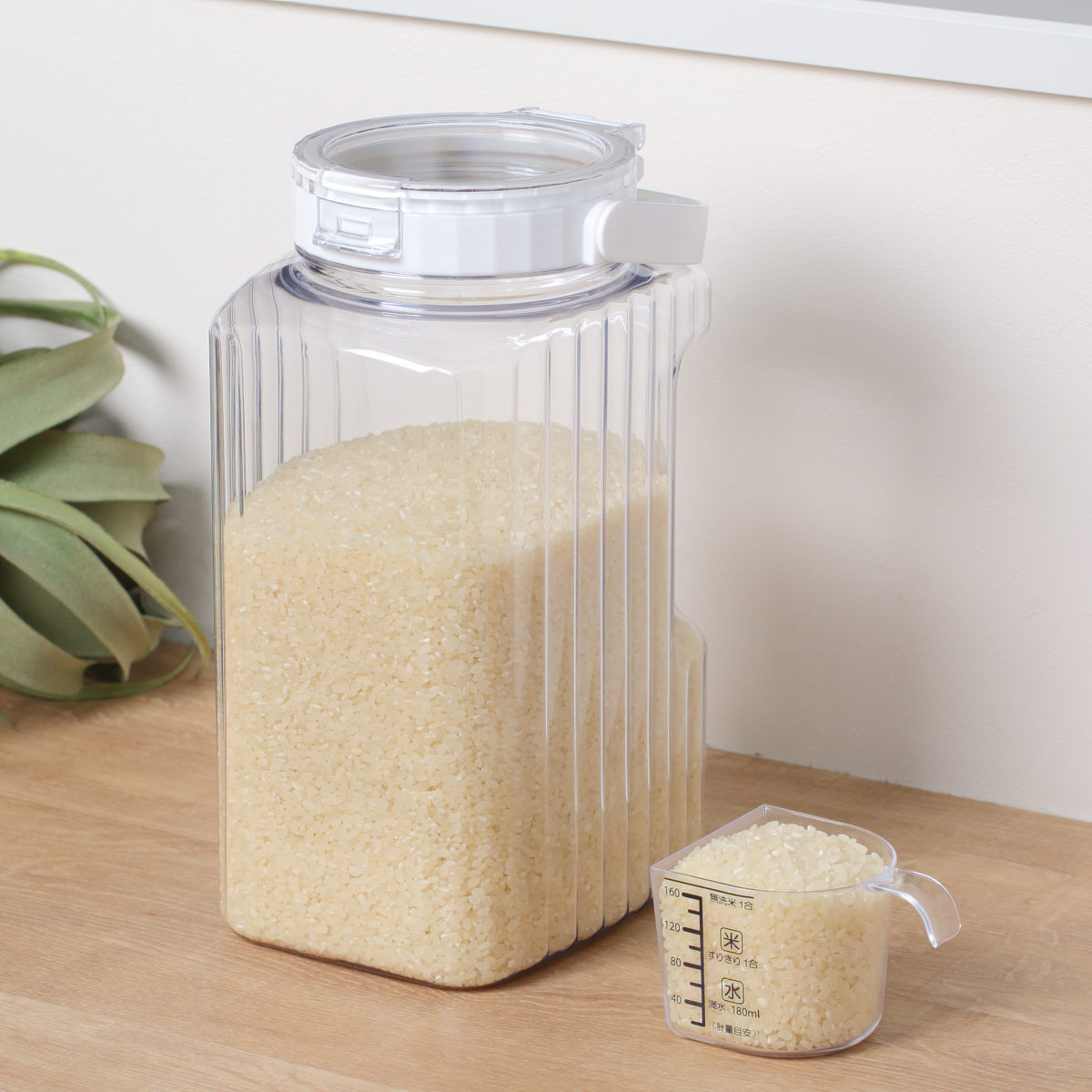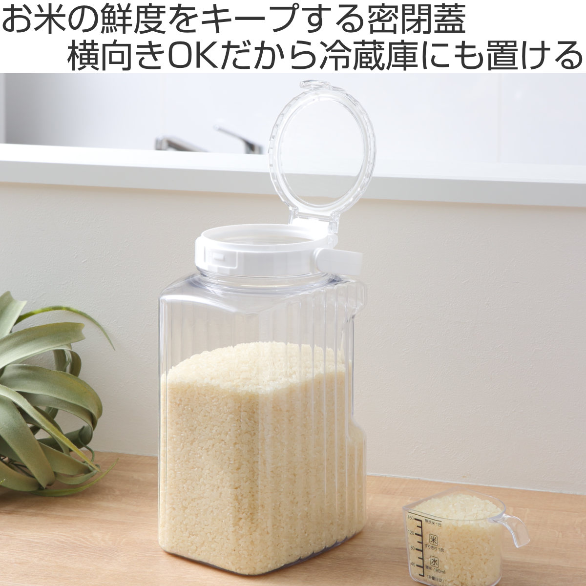 米びつ 3kg用 鮮度をキープ 密閉米びつ 1合カップ付 パッキン付き ( 保存容器 米櫃 ライスストッカー 冷蔵庫 引出し スリム 日本製 計量カップ付き 密閉 透明 プラスチック 3キロ シンク下 棚 米 お米 お米収納 お米保存 ケース )