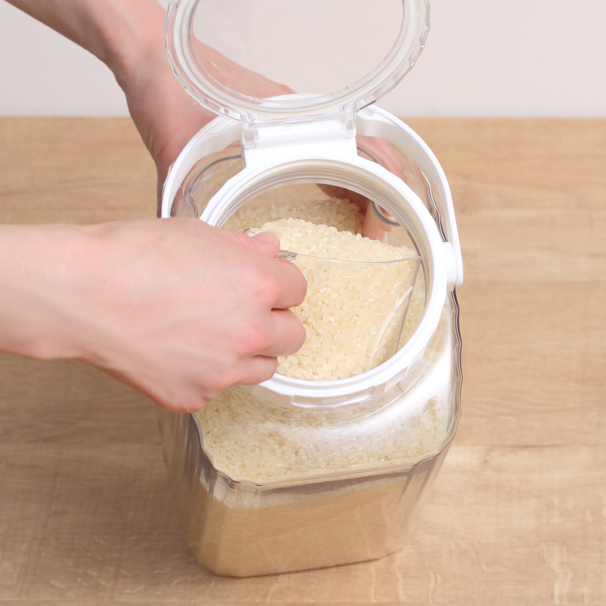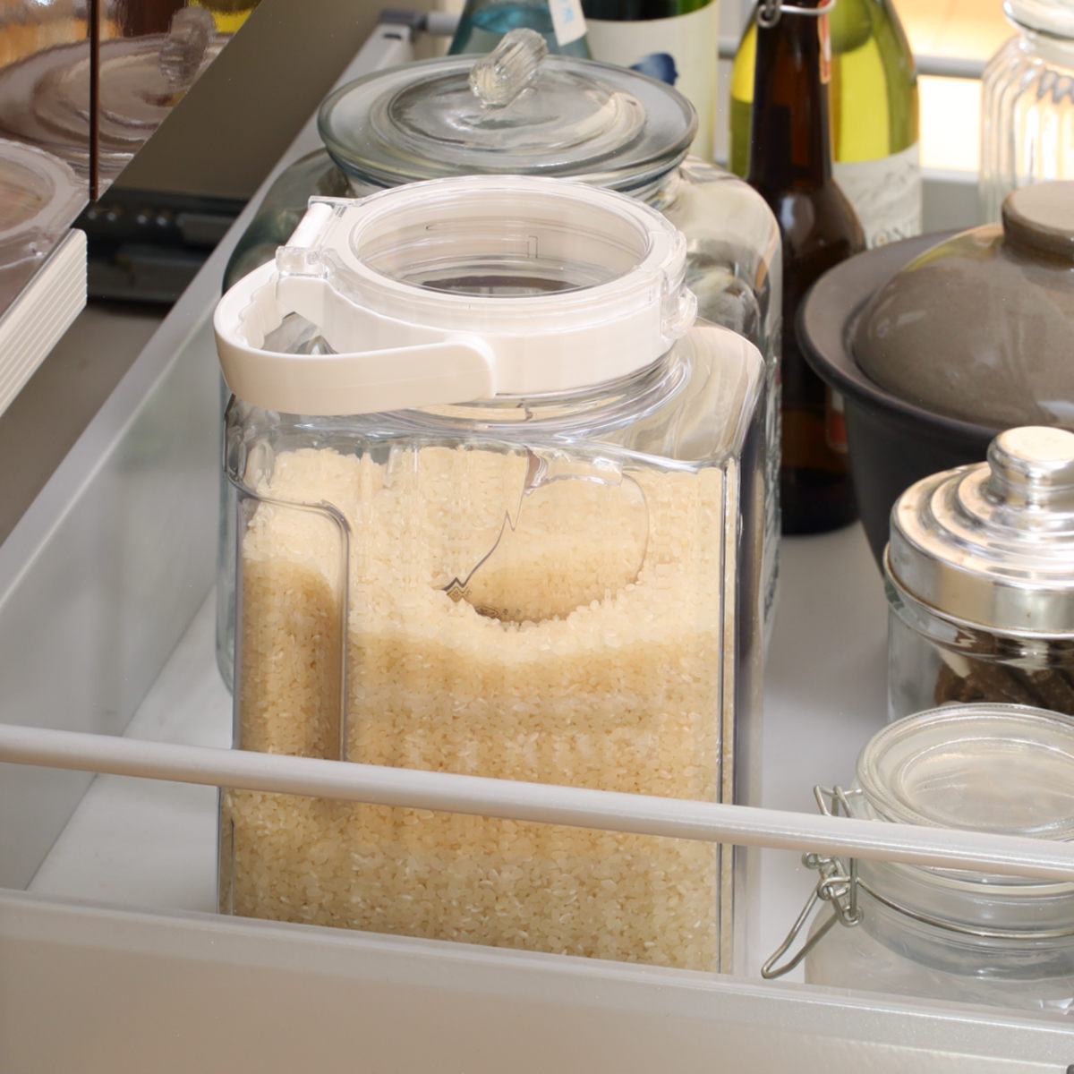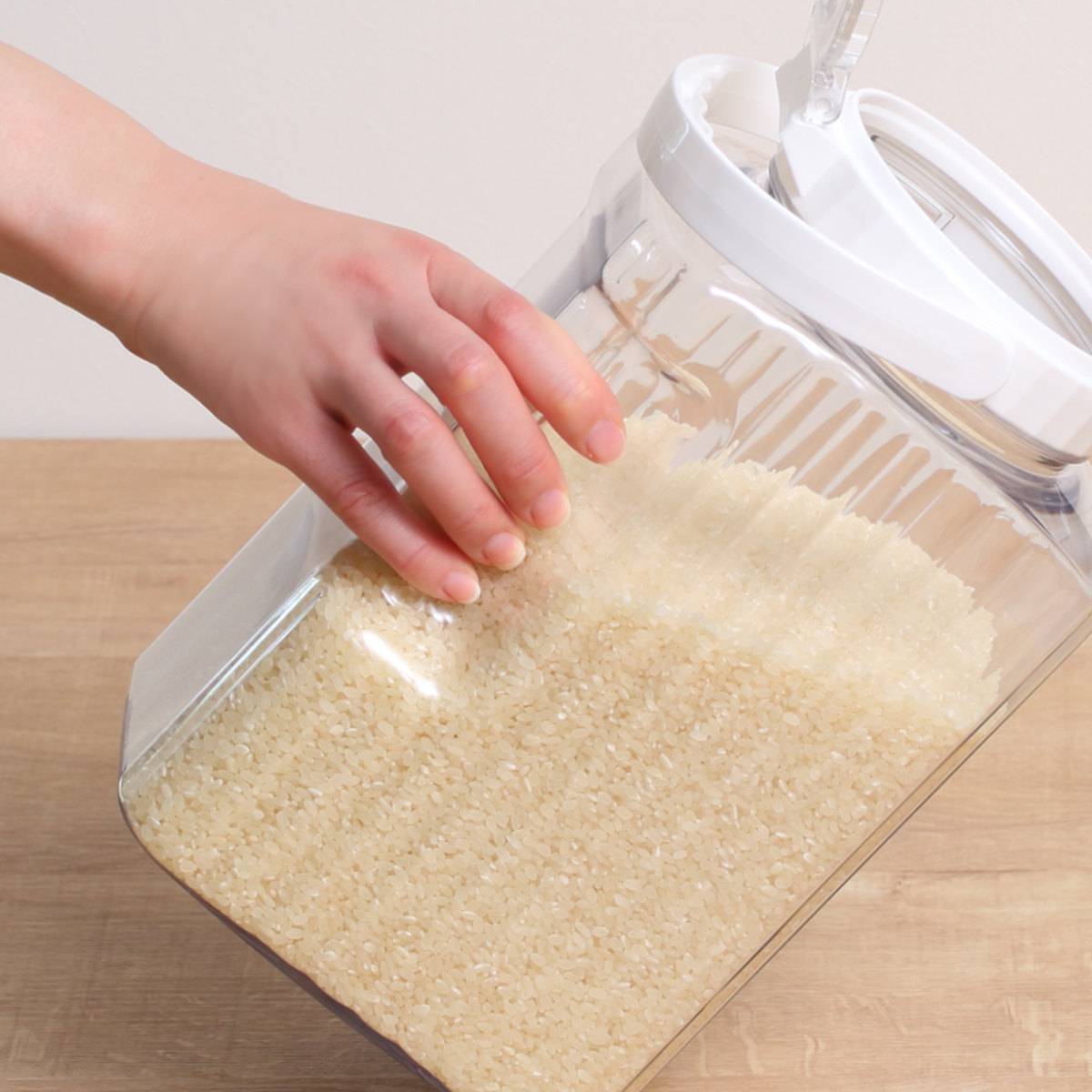 ケースはもちろん、フタも透明なので、お米の残量が一目で分かります。中の状態が見えることで、お米の買い足しのタイミングもわかりやすく買い忘れ防止にもなります。