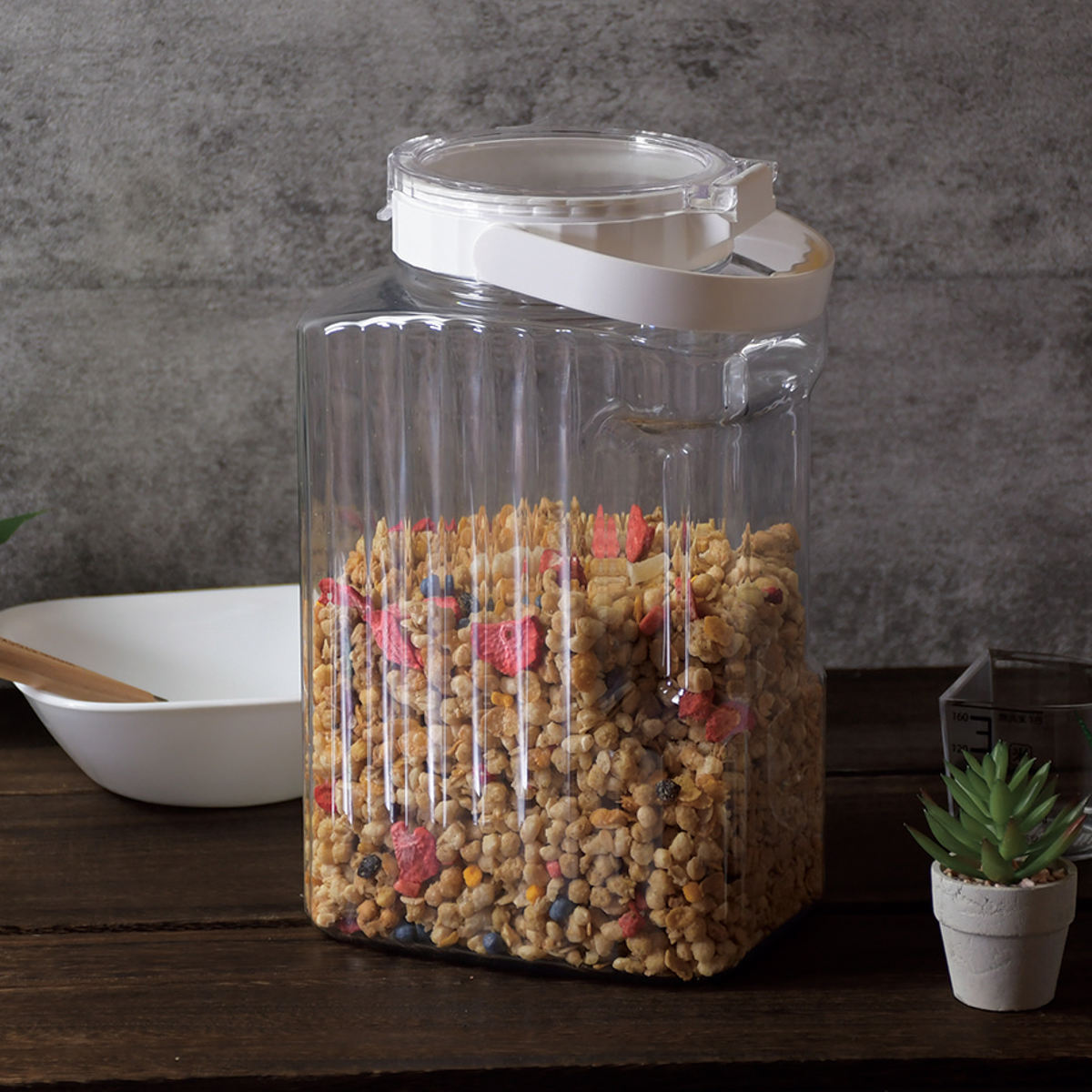 蓋は片手でラクに開け閉めできる設計です。毎日の計量や移し替えもストレスなく行え、忙しい時でも快適に使えます。
