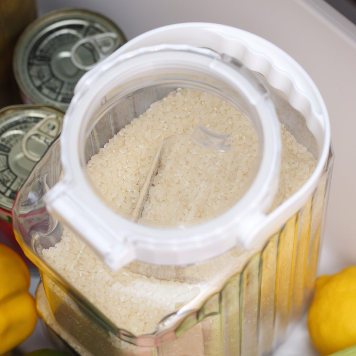 お米を保存するのはもちろん、お茶パックや乾物、お菓子やシリアル・パスタ・ペットフードなどの保存にもピッタリです。