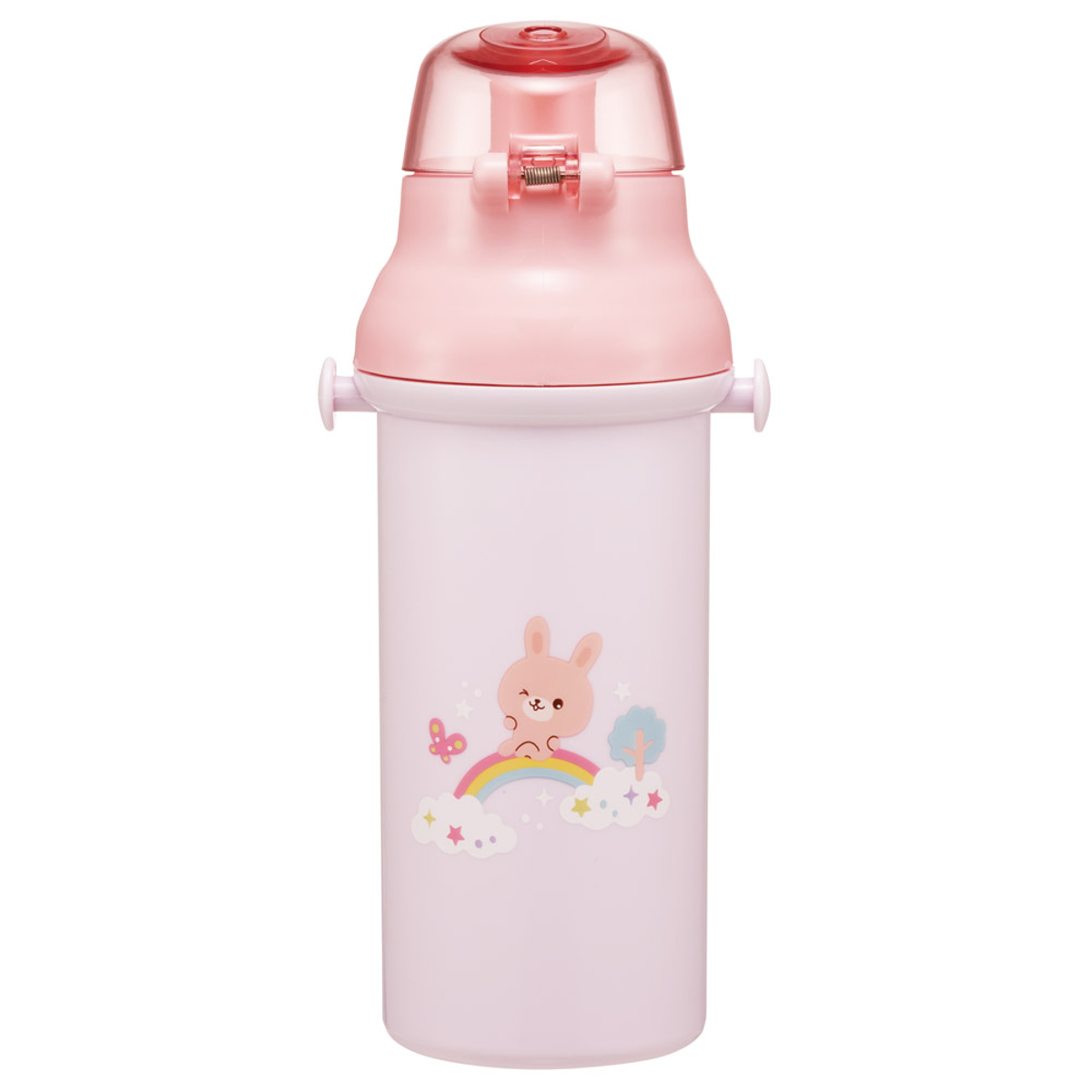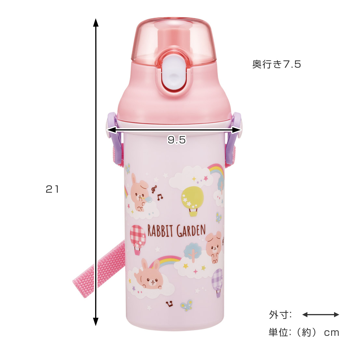 水筒 480ml 抗菌直飲プラボトル ラビットガーデン ( うさぎ 子供用 抗菌 プラスチック製 ダイレクトボトル 直飲み ワンタッチ 日本製 抗菌加工 AG 銀 ショルダーベルト付き 広口 軽量 ボトル ワンプッシュ )