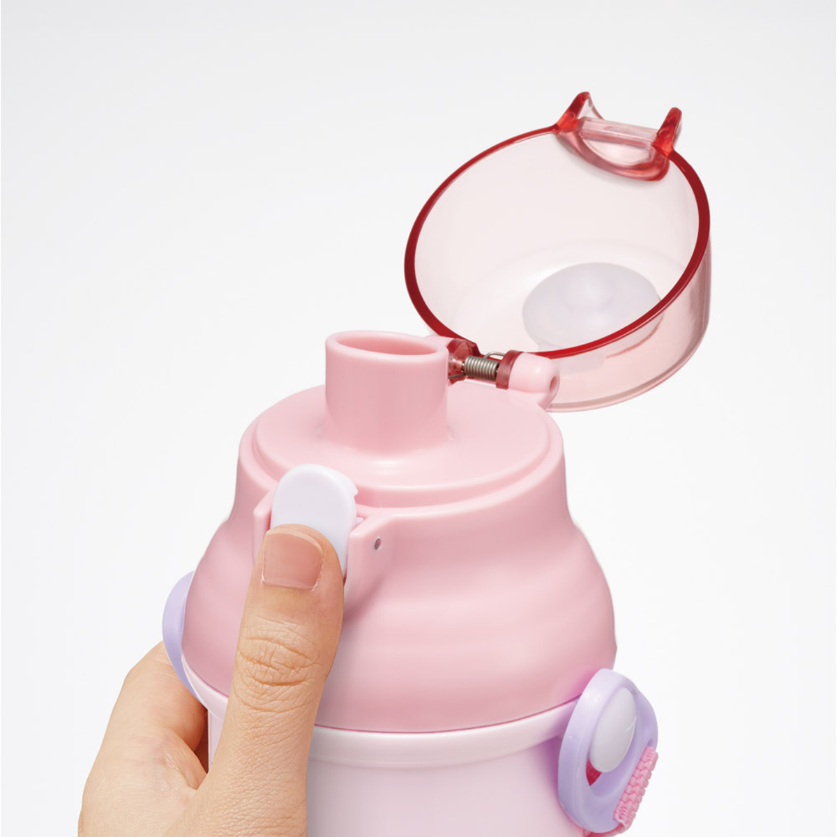 水筒の蓋はボタンを押すだけで開けることができるワンタッチ式です。飲み終わったら蓋をカチッと閉めるだけなので、小さなお子様でも簡単に開閉できます。