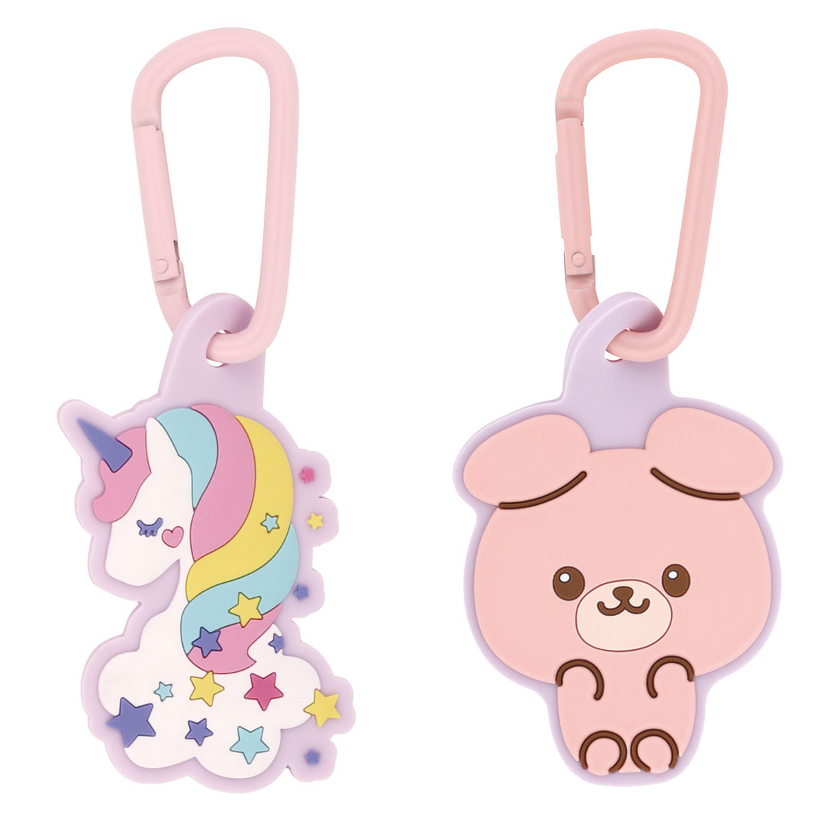 やわらかいラバーマスコット付きのカラビナです。バッグやリュックのかわいいアクセントになります。お子様の持ち物に取り付ければ、目印として役立ちます。