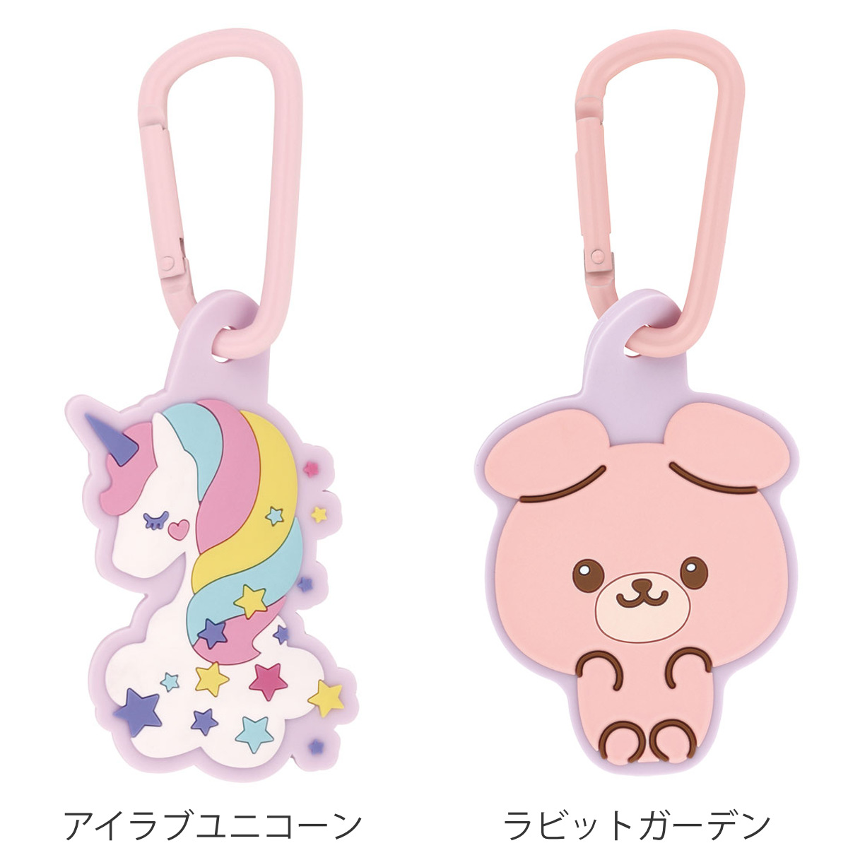 キーホルダー ラバーマスコット付き カラビナ ユニコーン ラビット ( フック マスコット 目印 紛失防止 バッグ リュック 子供 キッズ 通学 キーフック 鍵 キー 吊り下げ 持ち歩き 携帯用 おでかけ プレゼント ギフト ) 【ラビットガーデン】
