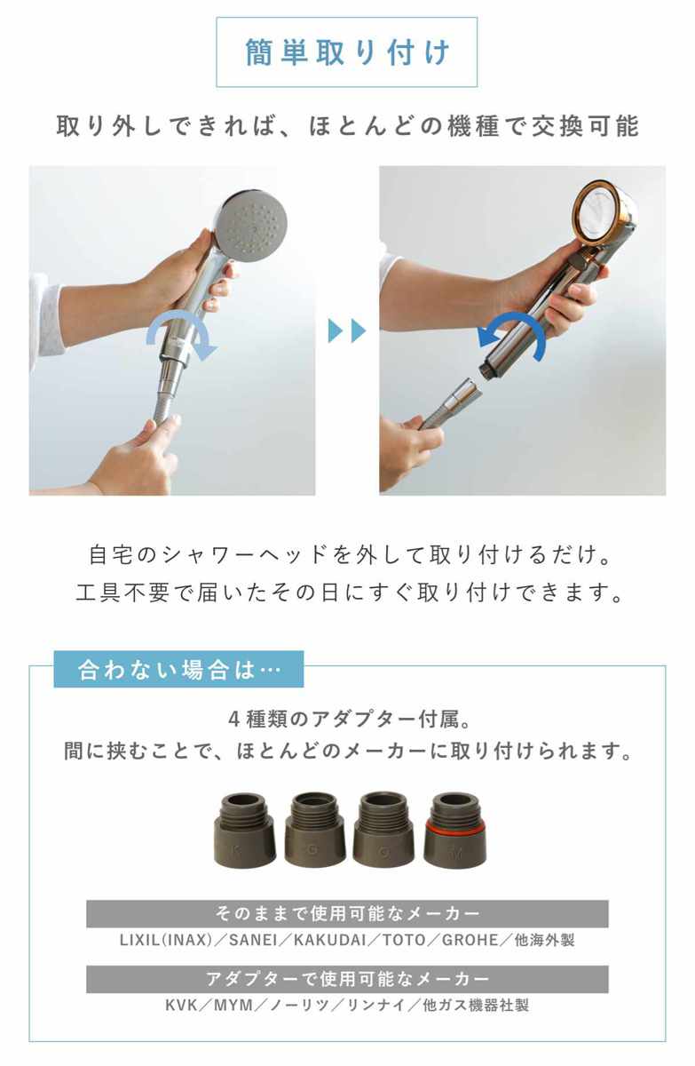 | 内容量 | シャワーヘッド:1個 アダプター4種、保証登録カード ビタミンCボール:2個 |