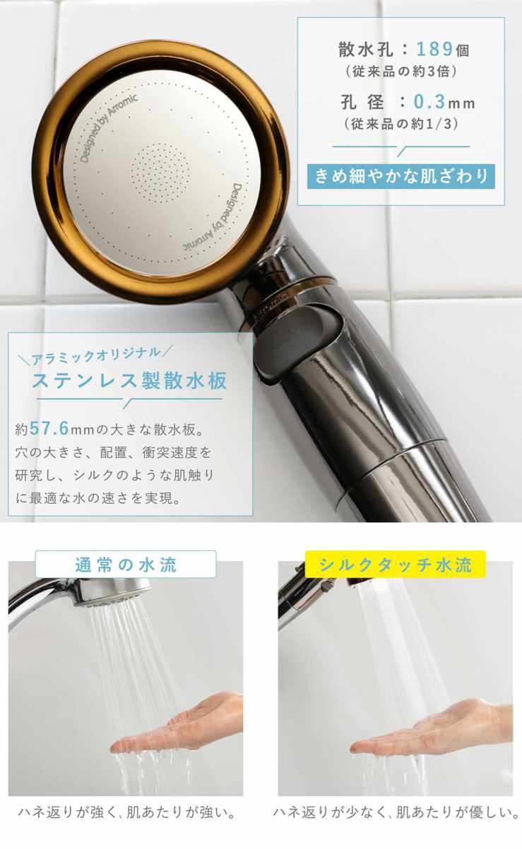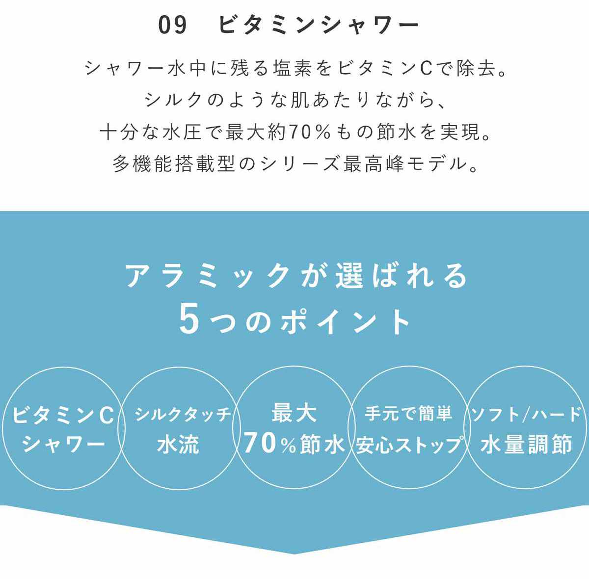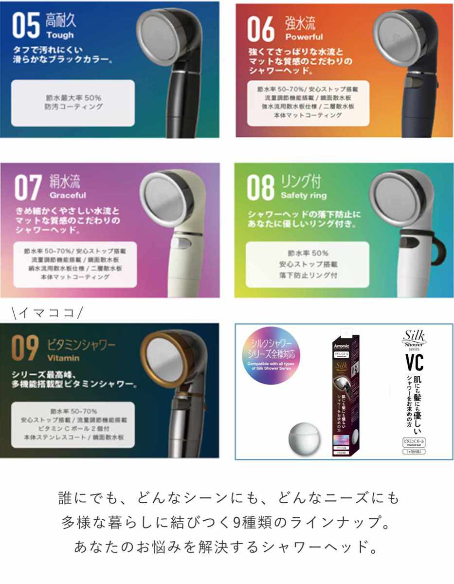 シャワーヘッド シルクシャワーシリーズ 09 ビタミンシャワー ( シャワー ヘッド 節水 塩素除去 アラミック Arromic 日本製 付け替え 取り替え 交換 節水シャワーヘッド シルクタッチ 水圧 強くする 増圧 節水効果 節約 )