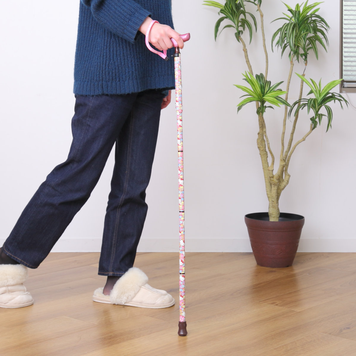 可愛いキティが杖全体にデザインされた折りたたみ杖です。大好きなキャラがお出かけを後押し、ファッションの一部として楽しめる杖です。