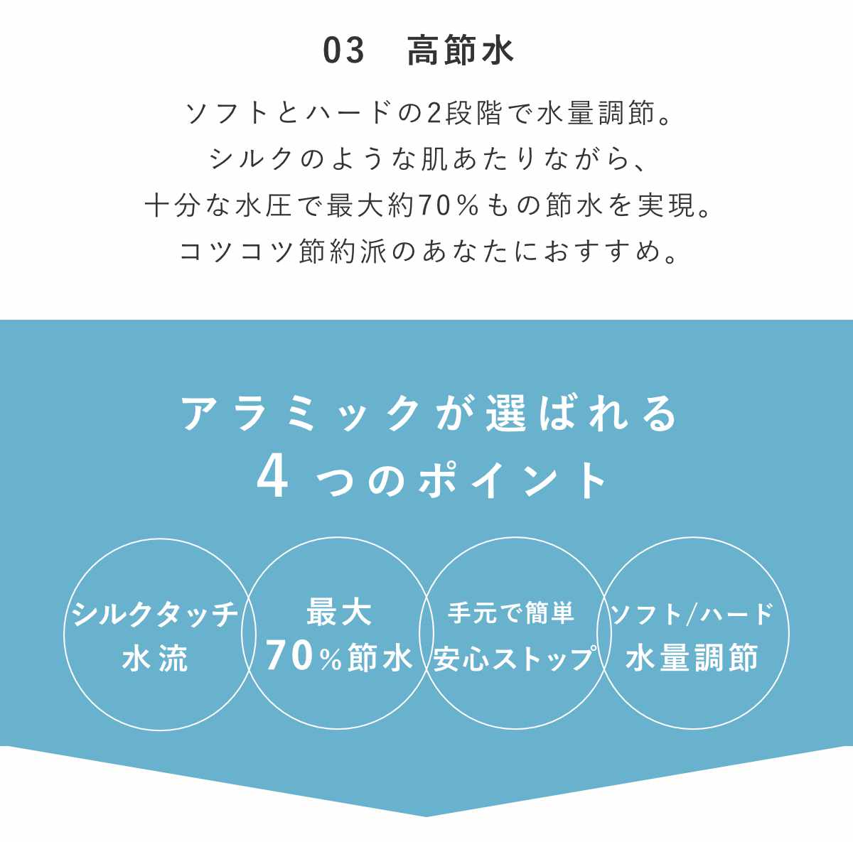 シャワーヘッド シルクシャワーシリーズ 03 高節水 ( シャワー ヘッド 節水 アラミック Arromic 手元ストップ 日本製 付け替え 取り替え 交換 節水シャワーヘッド 節水シャワー シルクタッチ 水圧 強くする 増圧 節水効果 節約 )