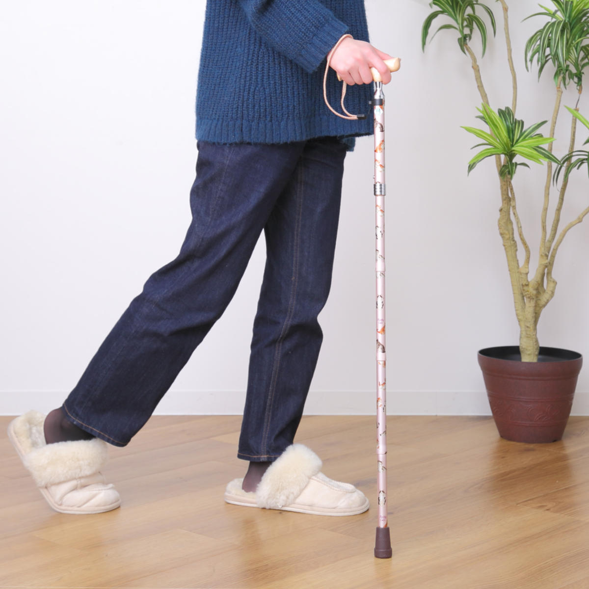杖 折りたたみ 愛杖 プリティキャッツ 猫柄 ( つえ ツエ 折りたたみ杖 長さ調節 自立 軽量 介護 歩行補助 高齢者 おしゃれ 介護用品 SGマーク 5段階調節 歩行 補助 リハビリ 衝撃吸収 転倒防止 ストラップ付き ) 【ロゼッタピンク】