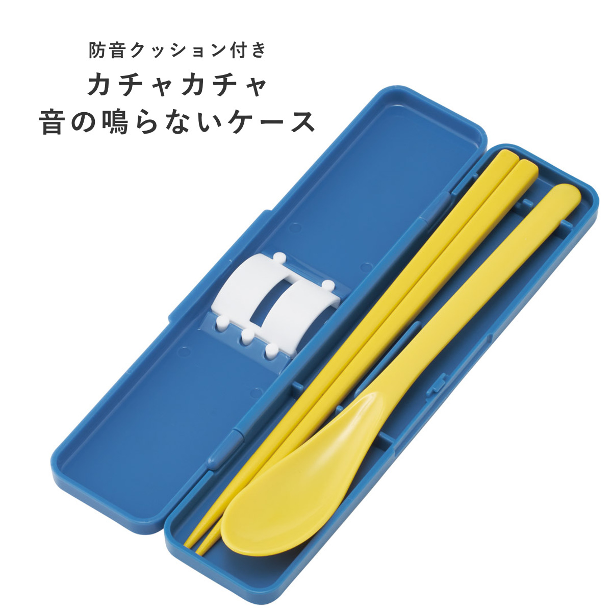 カトラリーを持ち運ぶときに、ケースにあたってカチャカチャ音が鳴りにくいようにケースの中に防音クッションが付いています。クッションがスプーンとお箸をしっかり押さえ、上下左右に動かないので音が鳴りにくい仕様です。