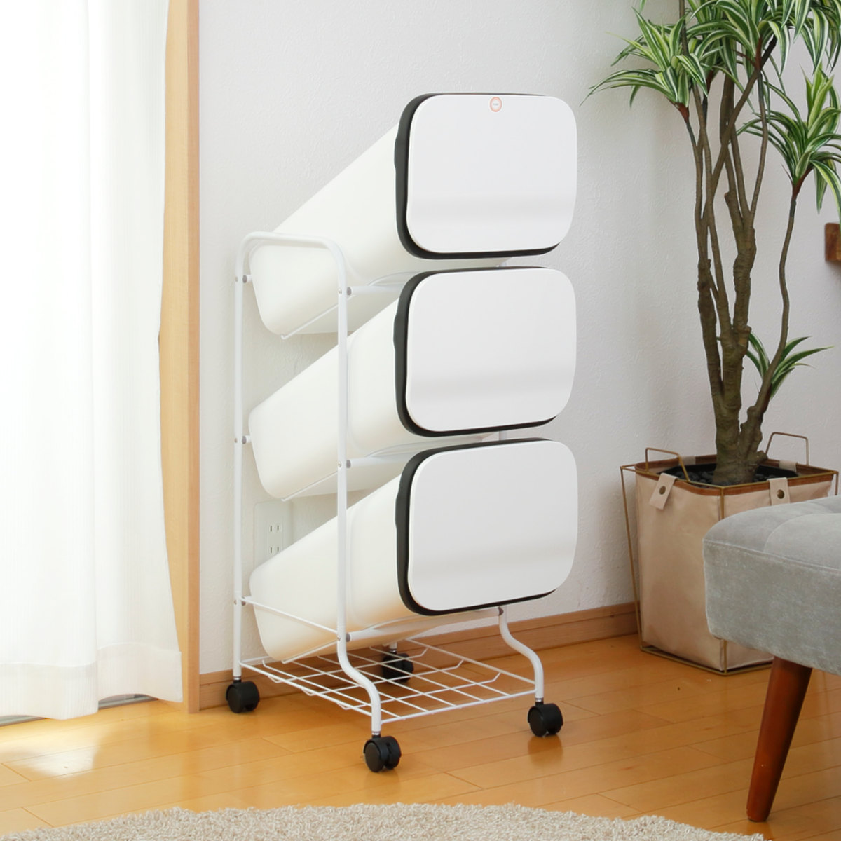 かさばる資源ゴミの分別を省スペース化 19L×3段