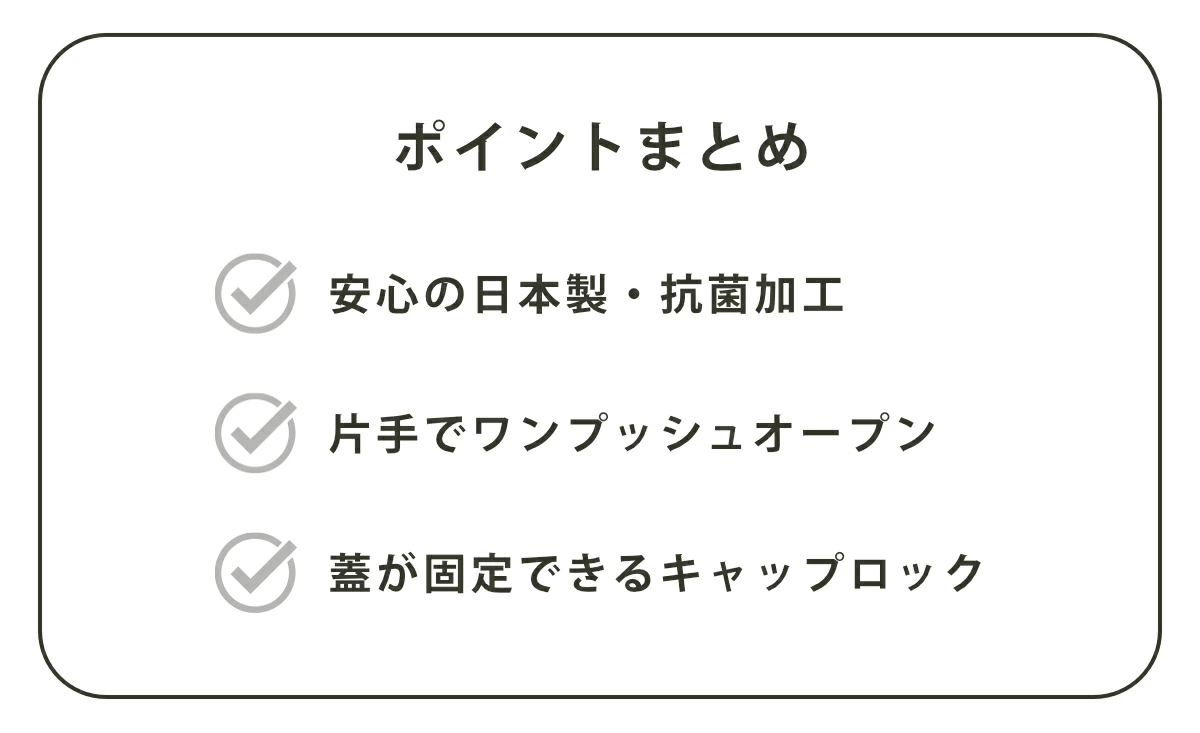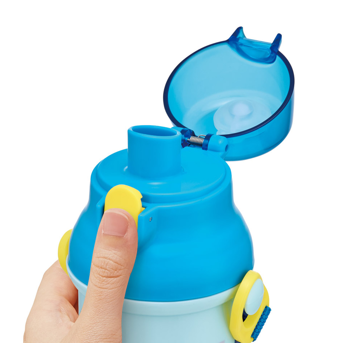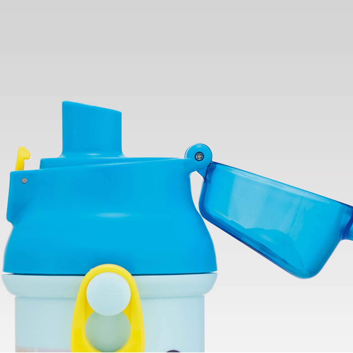 水筒の蓋はボタンを押すだけで開けることができるワンタッチ式です。飲み終わったら蓋をカチッと閉めるだけなので、小さなお子様でも簡単に開閉できます。