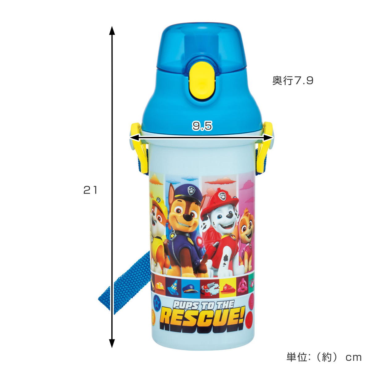 水筒 480ml 抗菌直飲プラボトル パウパトロール25 ( パウパトロール 子供用 抗菌 プラスチック製 ダイレクトボトル 直飲み ワンタッチ 日本製 抗菌加工 AG 銀 ショルダーベルト付き 広口 軽量 ボトル ワンプッシュ )