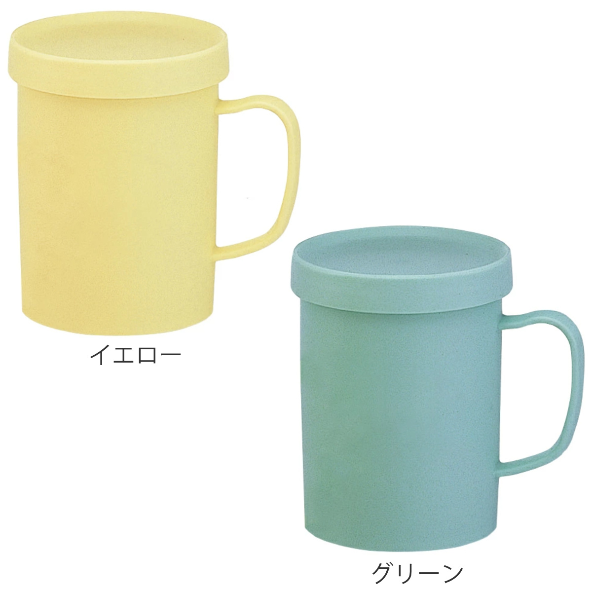 コップ アシストコップ フタ付き 300ml コースター 持ち手付き 日本製 ( マグ カップ 電子レンジ対応 食洗機対応 ポリプロピレン お手入れ簡単 割れにくい 蓋付き 取手付き パステルカラー 安心 ) 【イエロー】