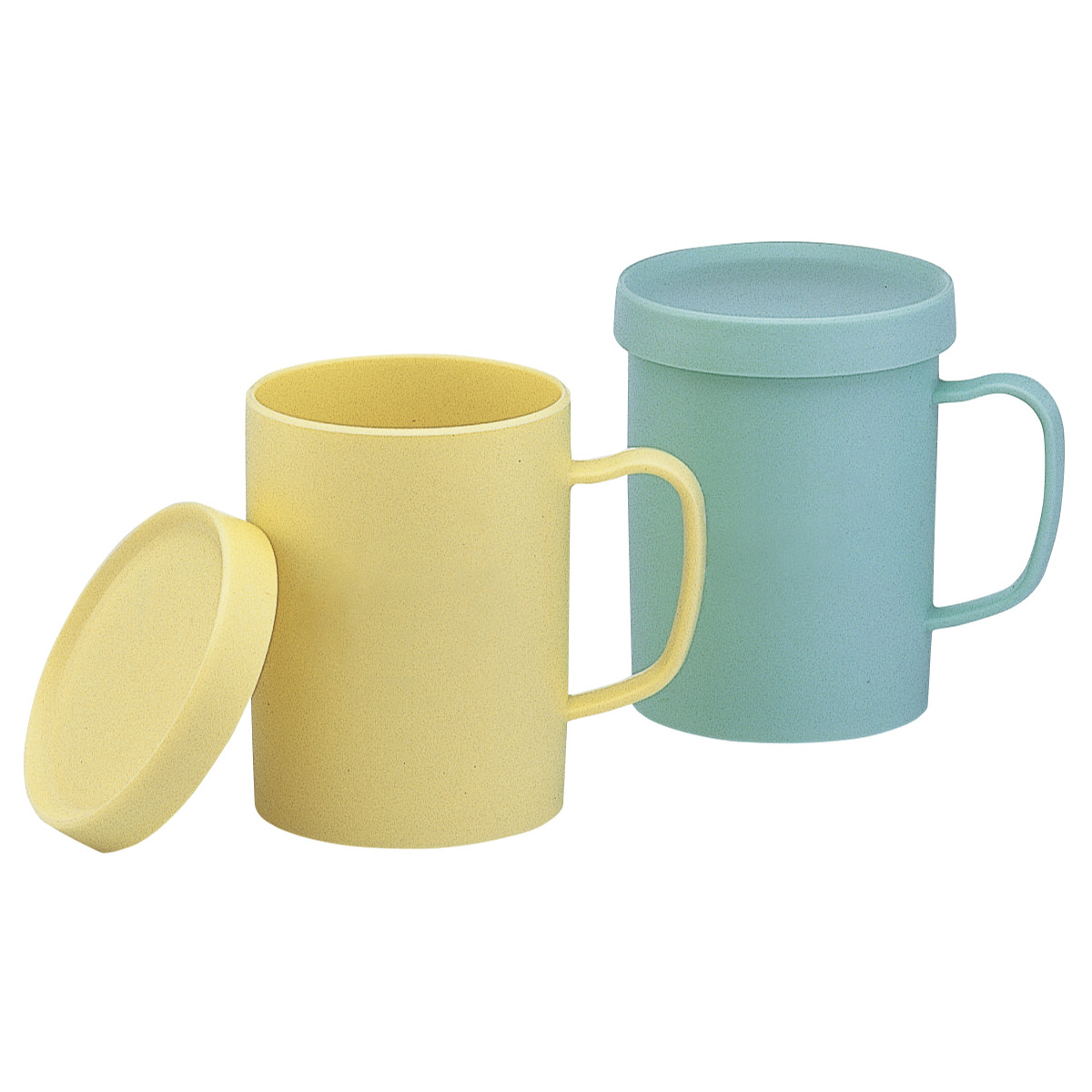 ほこりを防いで衛生的に使えるフタ付きコップです。軽量で落としても割れにくいポリプロピレン製で、手に力が入りづらい人も安心して使用できます。