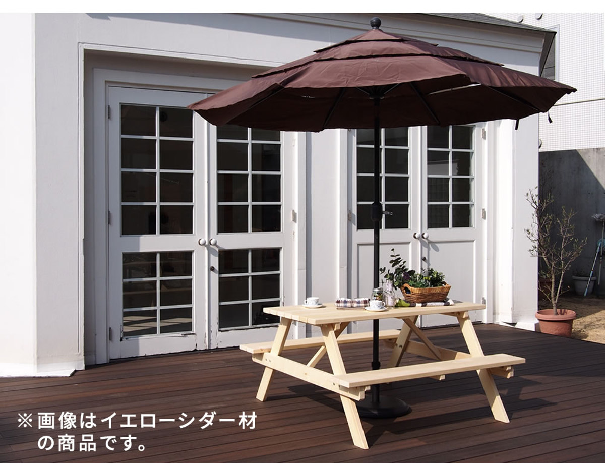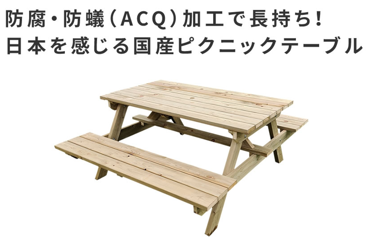 ガーデンテーブル 日本製ひのきピクニックテーブル 幅150cm 防腐加工 無塗装 ( テーブル ガーデンチェア ガーデン 庭 木製 机 ベンチ テーブルセット ウッドテーブル ウッドベンチ 檜 日本製 )