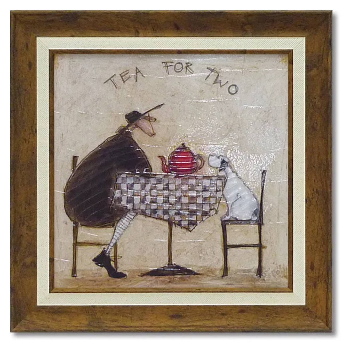 アートパネル サムトフト 39×39cm ( 絵画 絵 アート インテリア 額 額入り 壁掛け 犬 動物 幅39cm 正方形 ポスター アートフレーム アートポスター ウォールアート パネル 額付き かわいい ) 【2人でお茶】