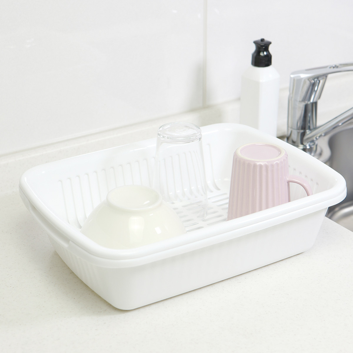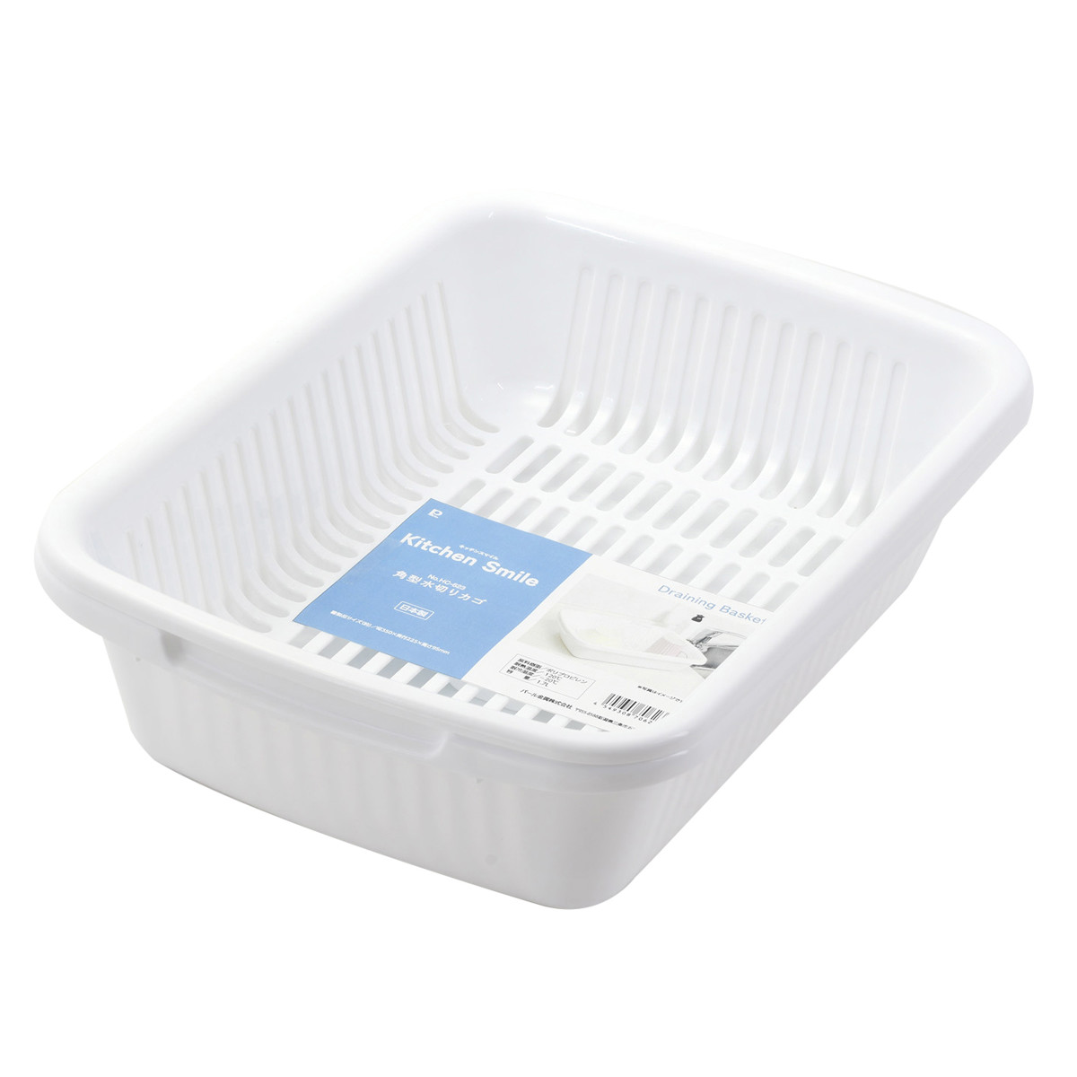 水切りラック キッチンスマイル 角型 水切りカゴ ( 水切りバスケット 水切りトレー ザル バット コンパクト プラスチック 日本製 洗い桶 食器 洗い 乾燥 ラック ディッシュラック ちょっと洗い 白 ホワイト )