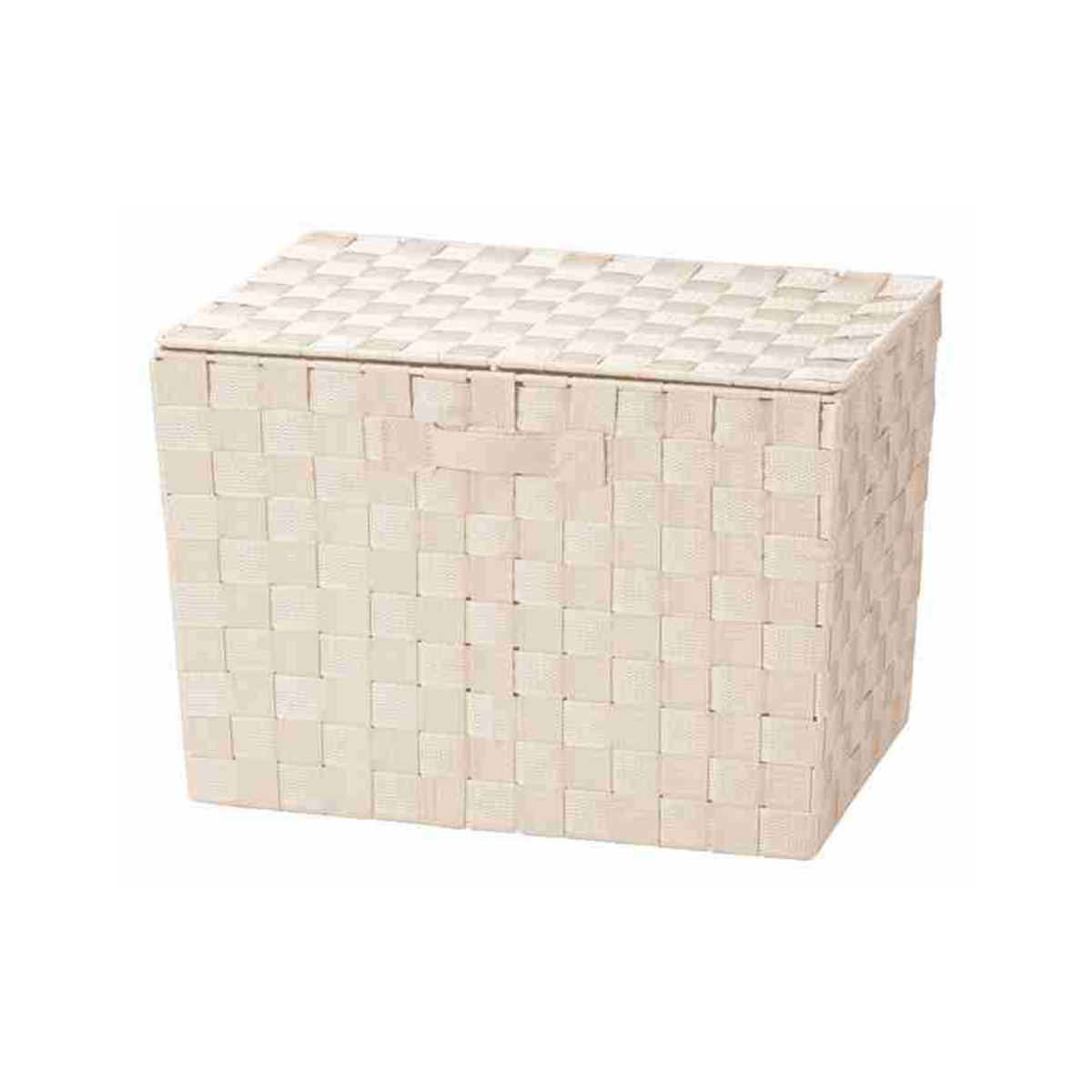 PP編みのシンプルなデザインでインテリアに合わせやすい収納ケースです。フタ付きで小物を隠して収納でき、また収納時もホコリから中身を守ってくれます。