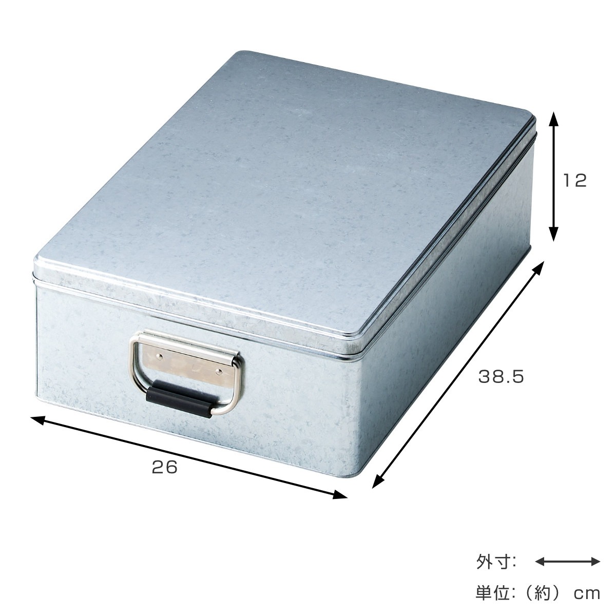 収納ボックス トタン収納 ハーフ ブリキ ふた付き 幅26×奥行38.5×高さ12cm ( 収納ケース 収納 ボックス ケース 収納箱 蓋付き 持ち手付き スチール製 小物収納 工具箱 工具入れ レトロ インテリア おしゃれ 角型 整理整頓 )