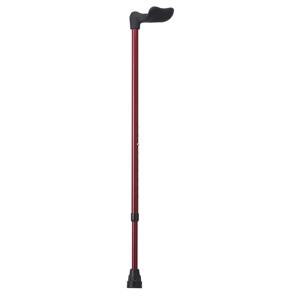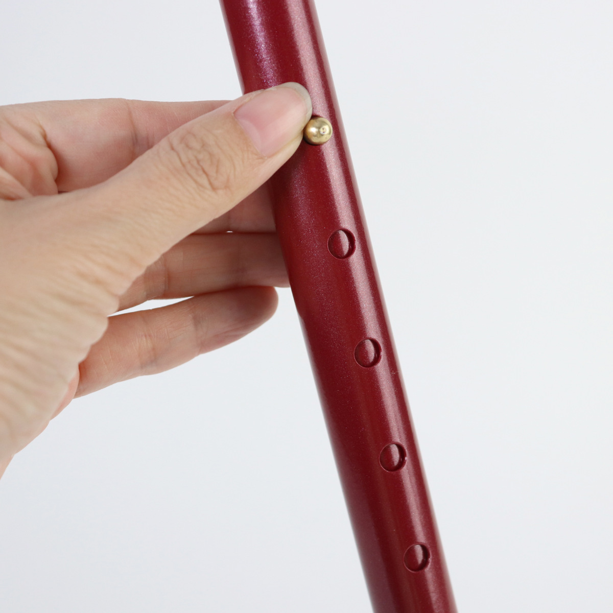 杖の長さは、2.5cm間隔で9段階に調節できます。ボタンを押しながらシャフトをスライドします。