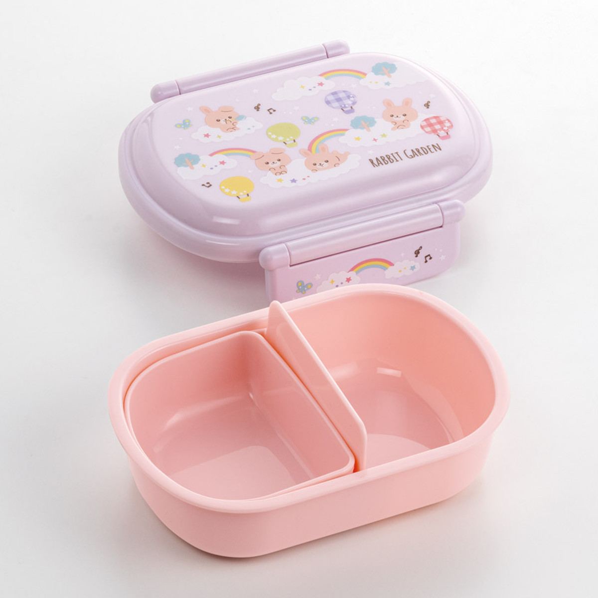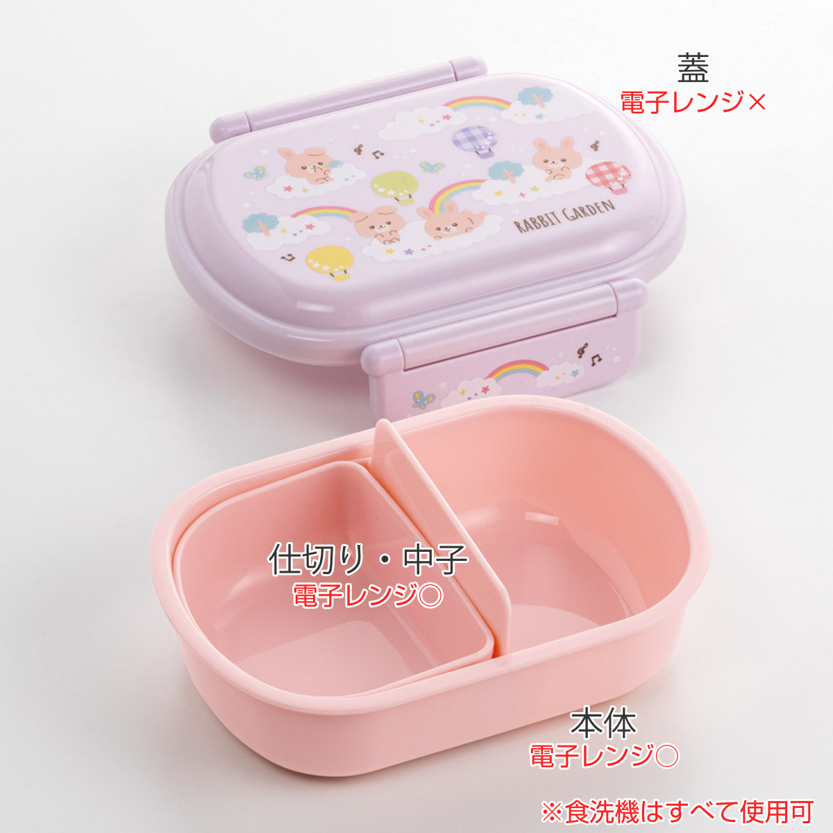 弁当箱 360ml 1段 抗菌ふわっとタイトランチ ラビットガーデン ( うさぎ ランチボックス 食洗機対応 レンジ対応 抗菌 日本製 ドーム蓋 キッズ 子供 食洗機OK レンジOK お弁当 弁当 一段 2点ロック 銀 AG 抗菌加工 )