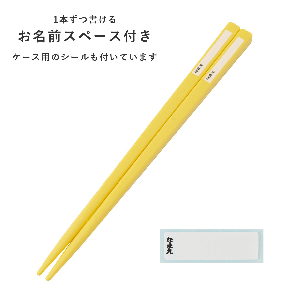 お箸には1本ずつ名前を書き込める名前スペースがあります。ケース用のシールも付いています。