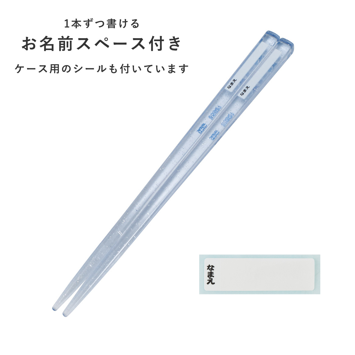 お箸には1本ずつ名前を書き込める名前スペースがあります。ケース用のシールも付いています。