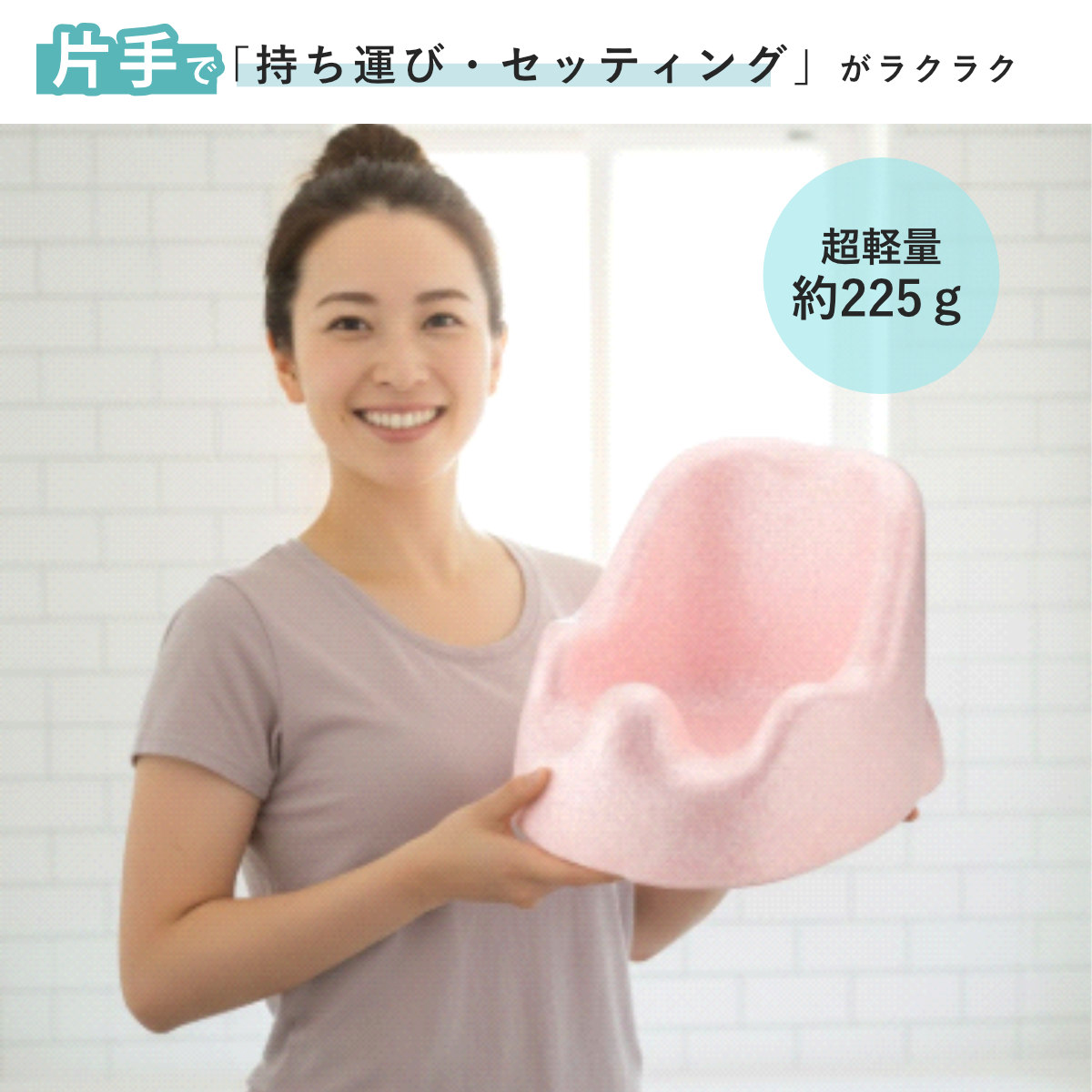とっても軽いので、赤ちゃんを抱っこしたままでも片手で浴室内へ持ち運べます。定位置へのセッティングも簡単です。