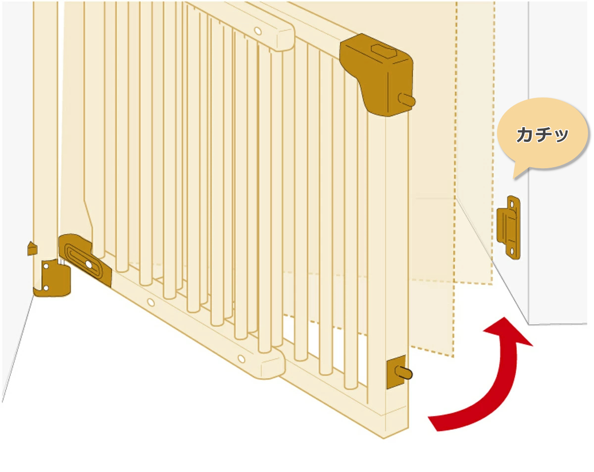 手を離せば自動でドアが戻り、上下2ヵ所が即座に固定されるオートクローズ機能を搭載しています。 「うっかり閉め忘れた」という隙を作らないため、目を離した際の侵入を未然に防ぎます。 忙しい時間帯でも、常にゲートが閉まった状態をキープできる安心の設計です。