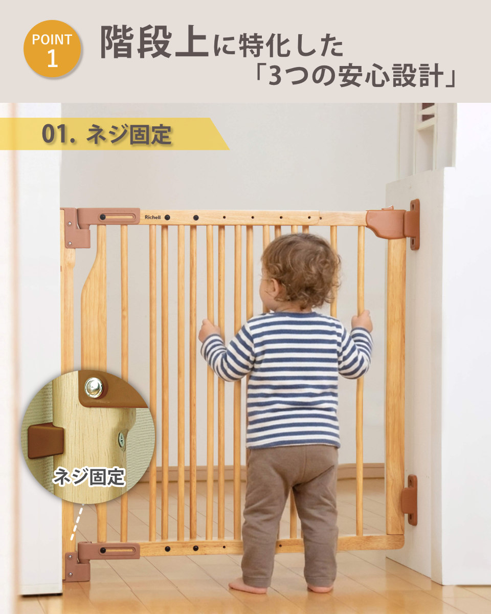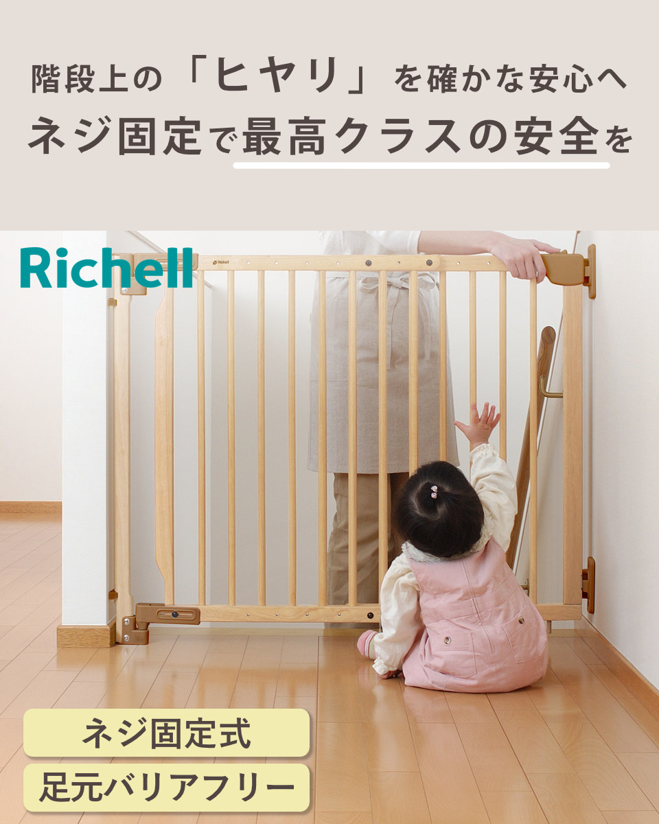 ベビーゲート 階段の上でも使える 木のバリアフリーゲート 階段 ( リッチェル ベビーガード 木製 74~114cm 階段上 ネジ 固定 ベビー 赤ちゃん ペット 柵 ベビーフェンス ゲート セーフティグッズ ナチュラル )