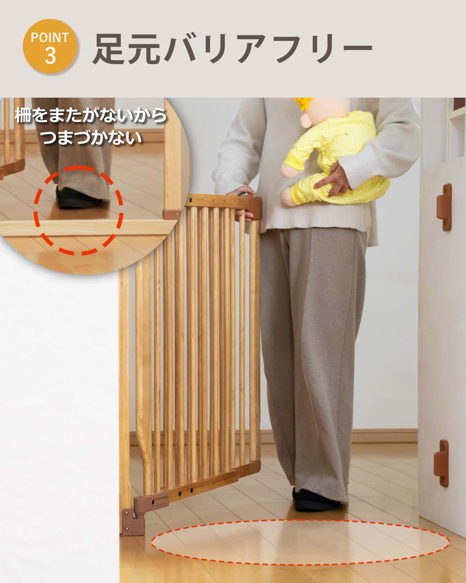 だからこそ物理的に外れない「ネジ固定」と「足元バリアフリー」にこだわったベビーゲートをおすすめします。